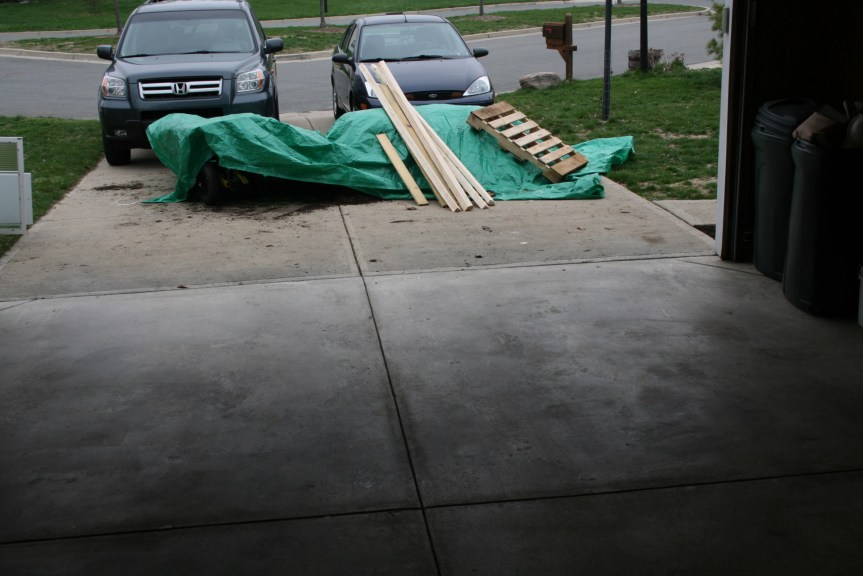 We cleaned out the garage last night, which included a “mopping.” It needed it, I promise. I had to give it another rinse this morning because the soapy/scummy water dried like broom strokes.