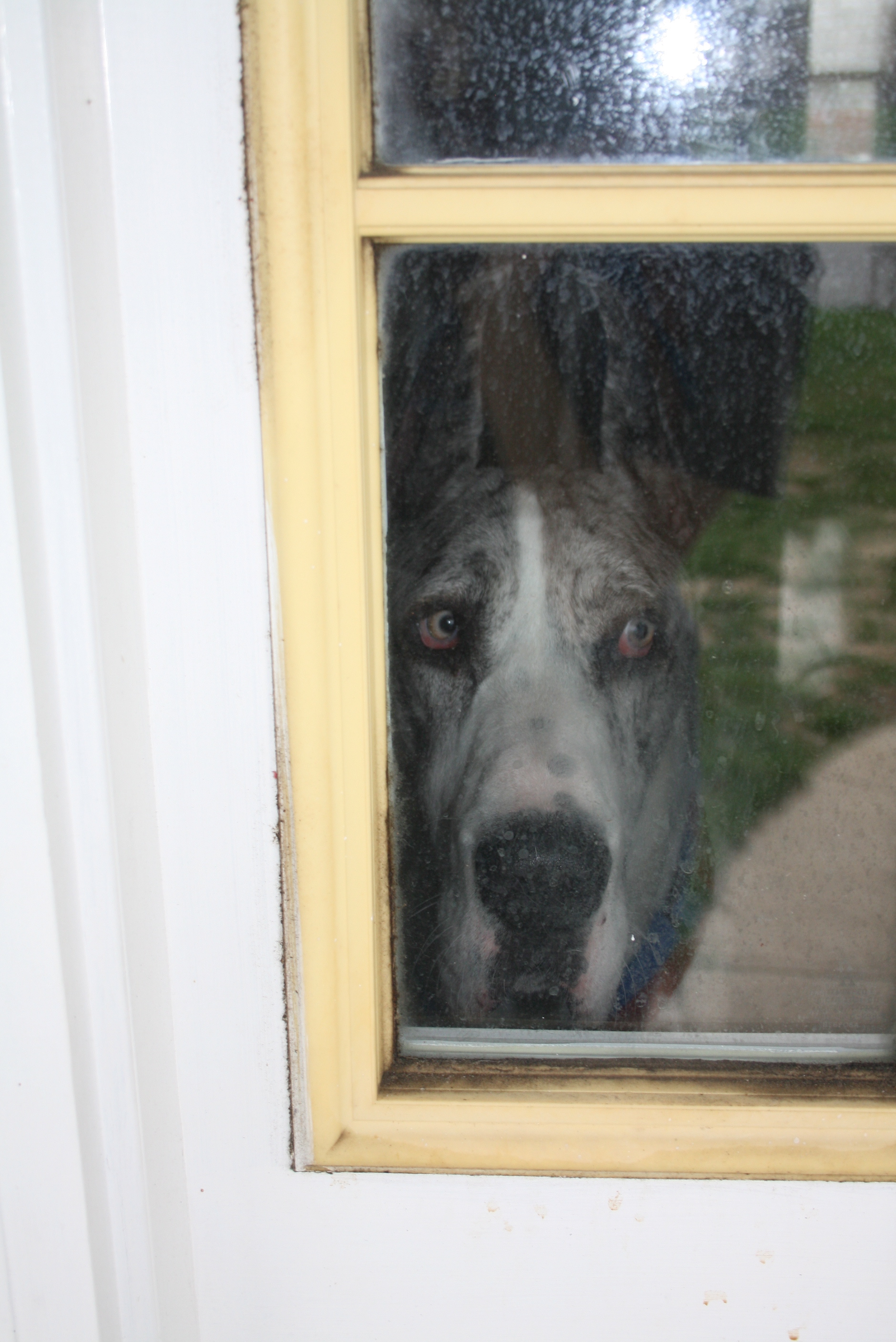 One of the things I wanted to do today was clean the grime off the yellowed window frames next to our front door. Hi Hadrian!