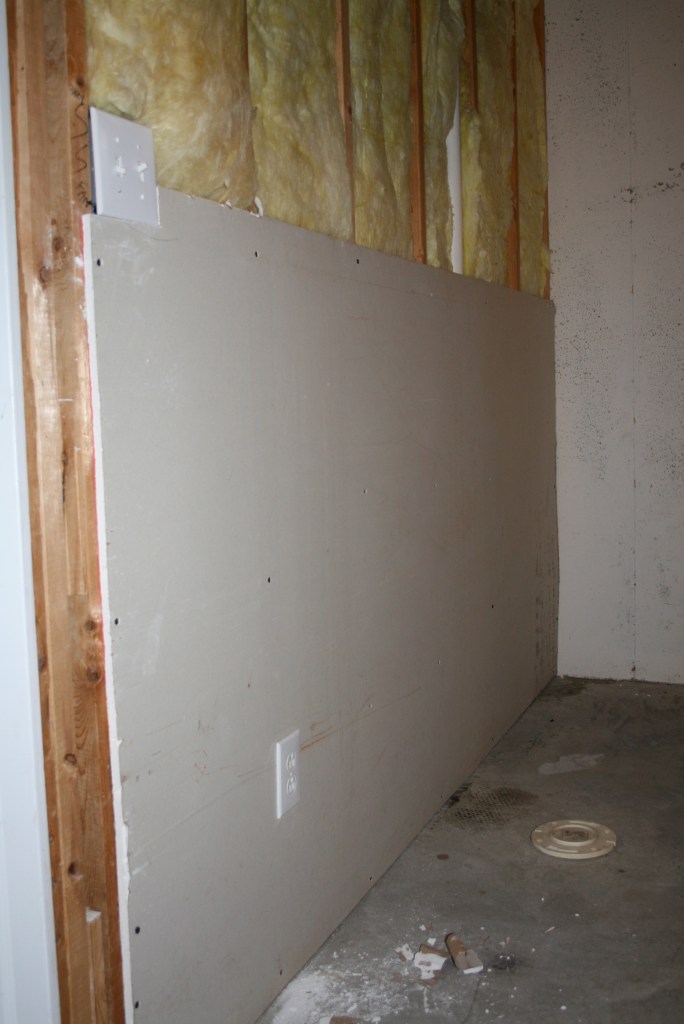 Andrew put up some drywall in our basement–it’s been bare since we moved in!