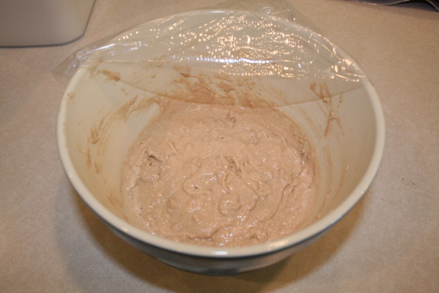 It called for the water, honey, yeast and some of the flour to be mixed and then given a rest for an hour.