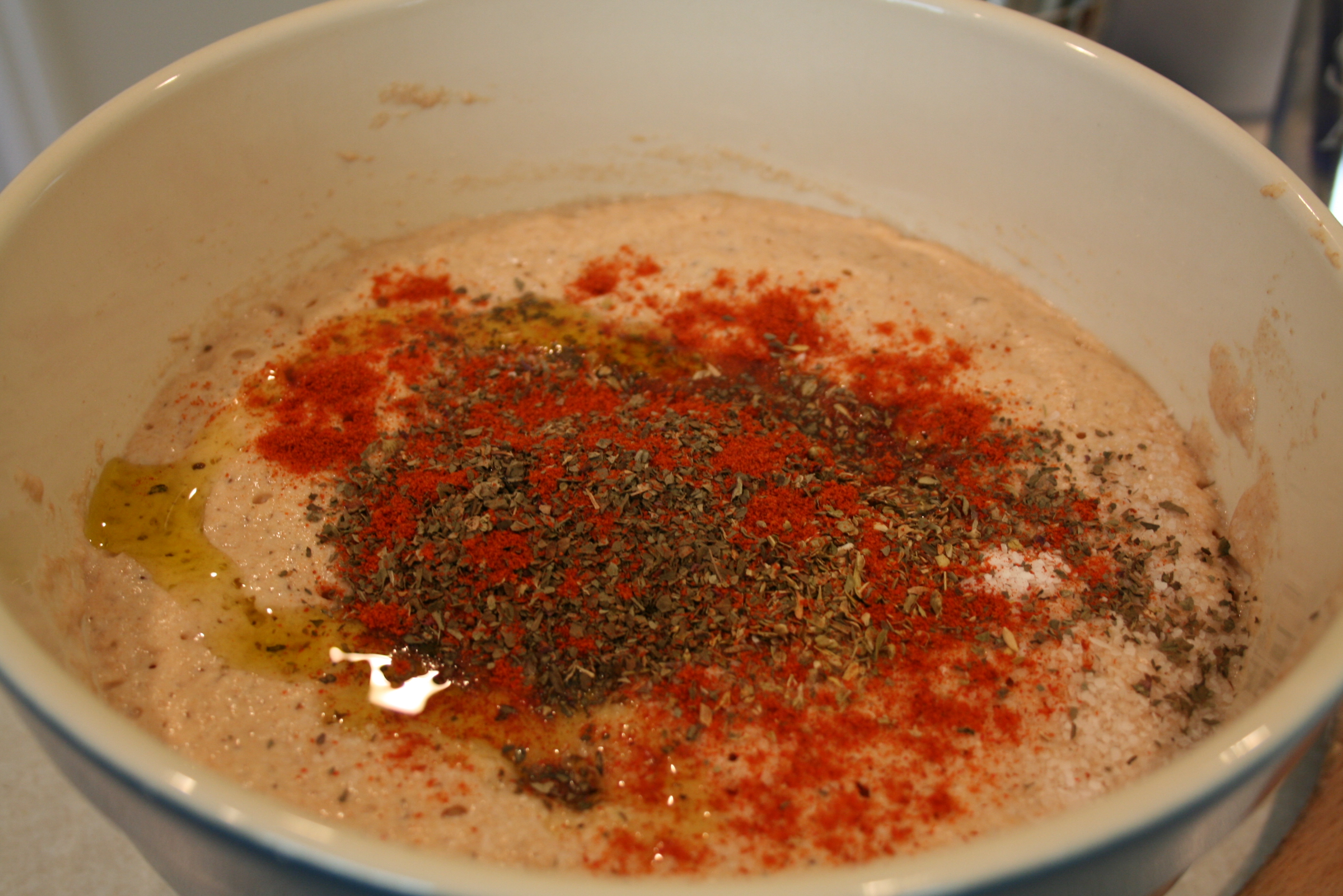 After the rest, it called for 1 tbsp each of dried oregano and basil (a teaspoon probably would have been fine), as well as salt, cayenne pepper and olive oil.