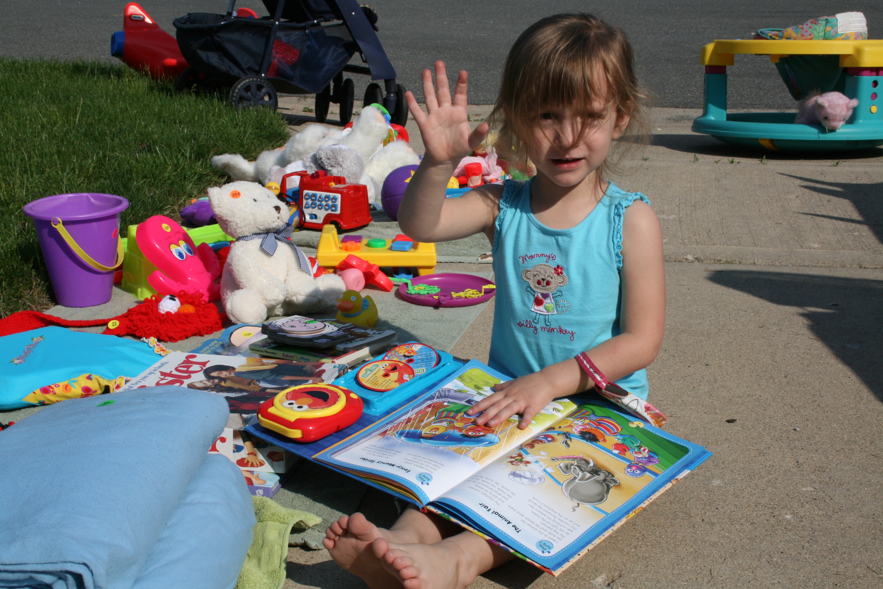 Margaret did incredibly well and only shed a few tears as yard-salers started picking through her toys. Only one item was “un-yard-saled” (a purple bouncy ball) and brought back into the garage.