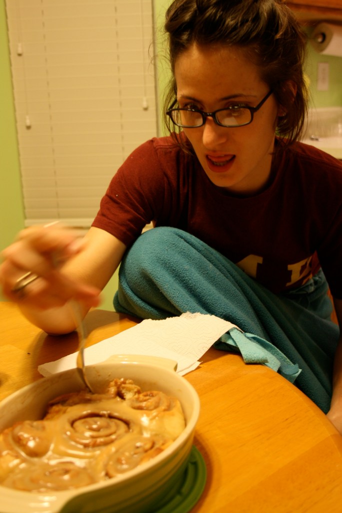 Here we are at 11 p.m. and no cinnamon rolls have made it to the oven yet.  It’s going to be a long night.  Heather busted out the chips and dip (again)…  She is RUINING my diet!  Oh well, at least I’m having fun 🙂