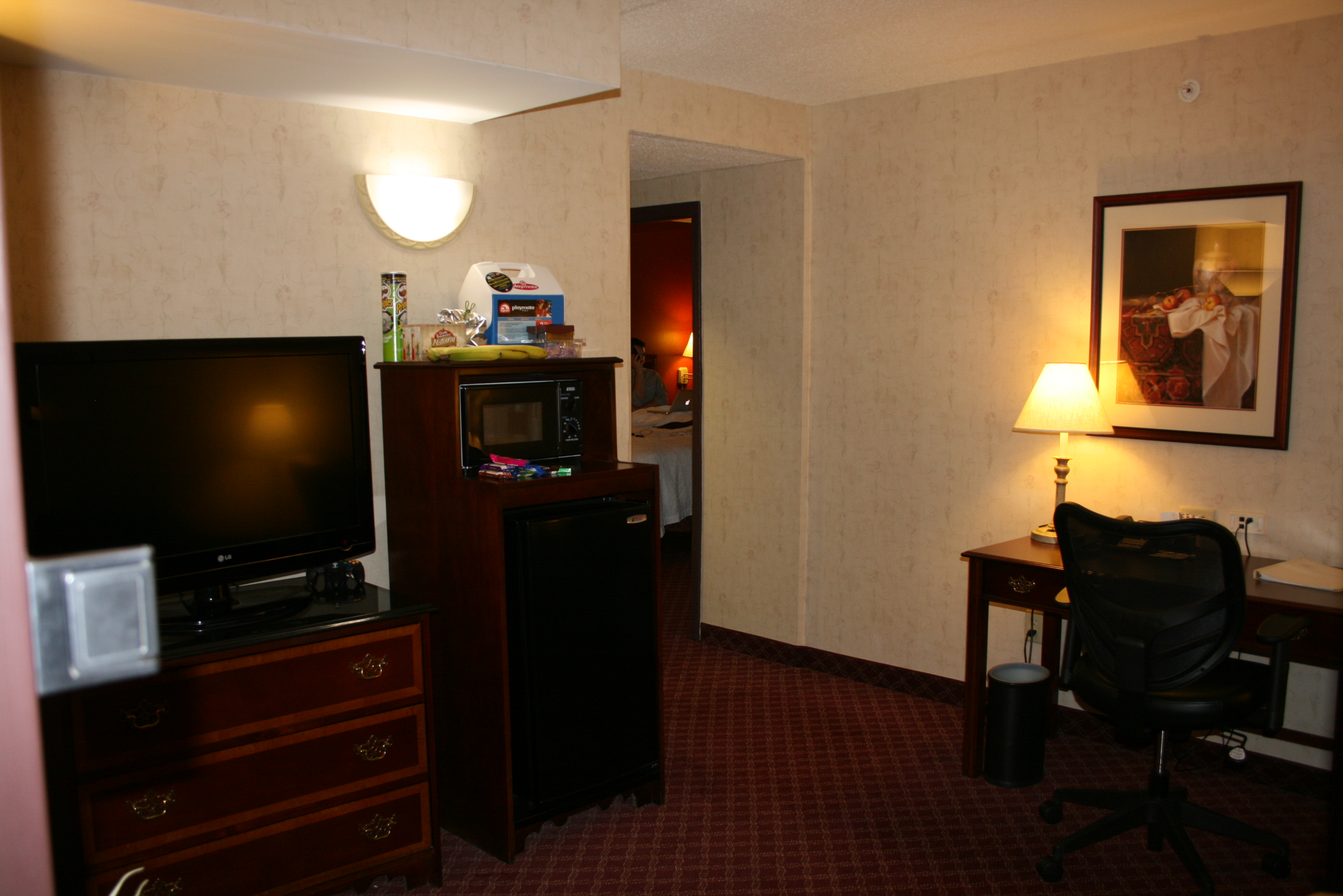 There is one other hotel in East Aurora, the Hampton Inn, and we got upgraded.  (I assume because there is NO ONE here.  I mean, come on, it’s East Aurora.  Unless it’s Roycroft Festival weekend or Moog has a giant conference, who comes here?)