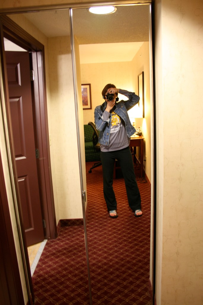 We have a full-length mirror–must get one for the house.  Had one in our apartment–I have missed it!  Hi self!  (Definitely had fun taking this picture.)