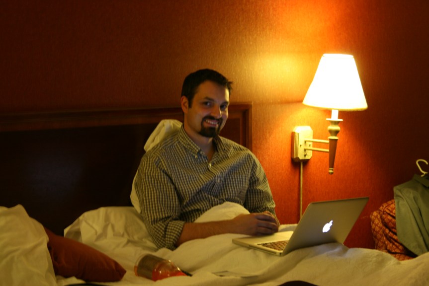 Andrew found the bed about two seconds after we got in the room.  Yes, he is still in his clothes.