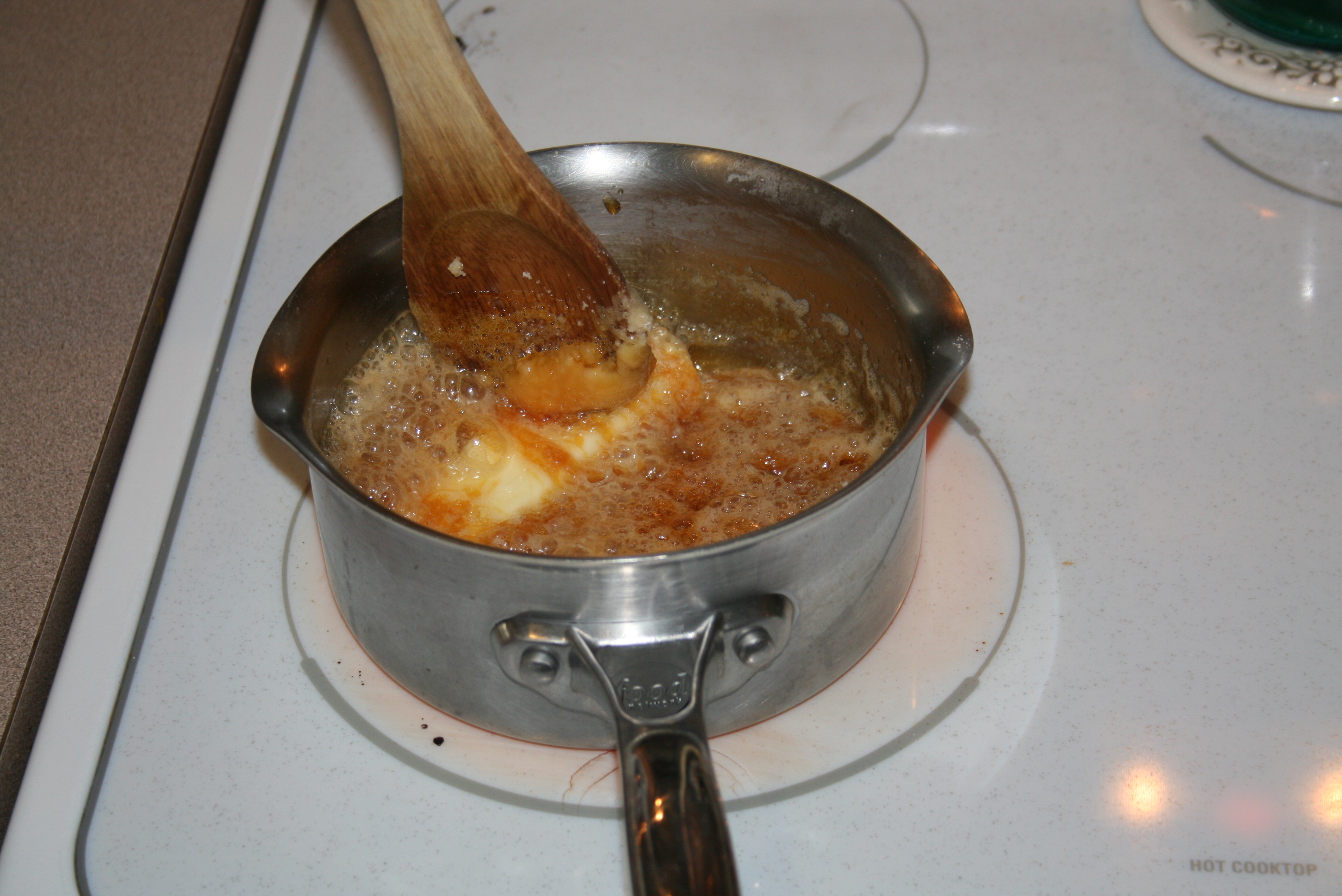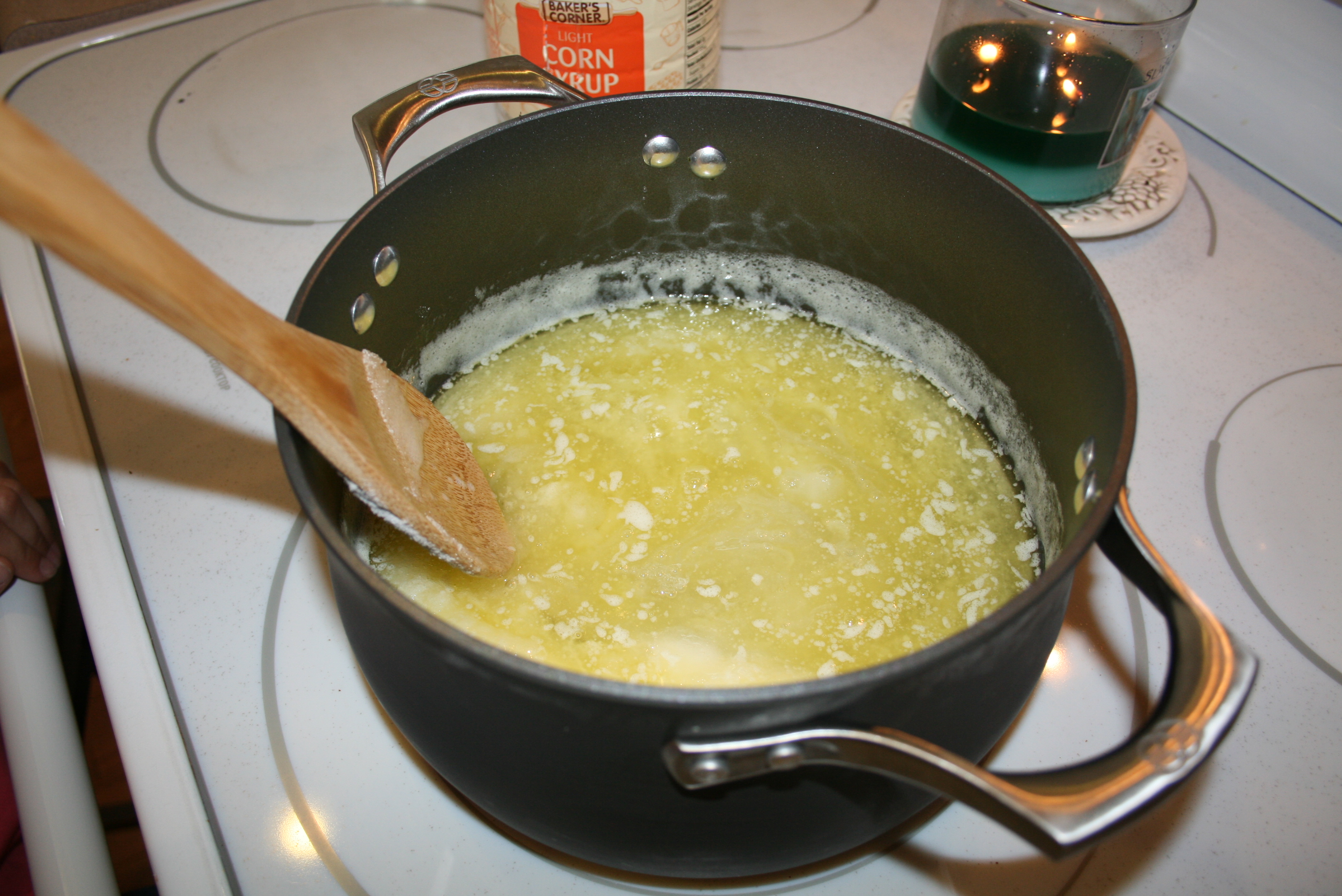 Let the corn syrup, butter and sugar boil for five minutes. And use a wooden spoon. Apparently it’s a requirement.