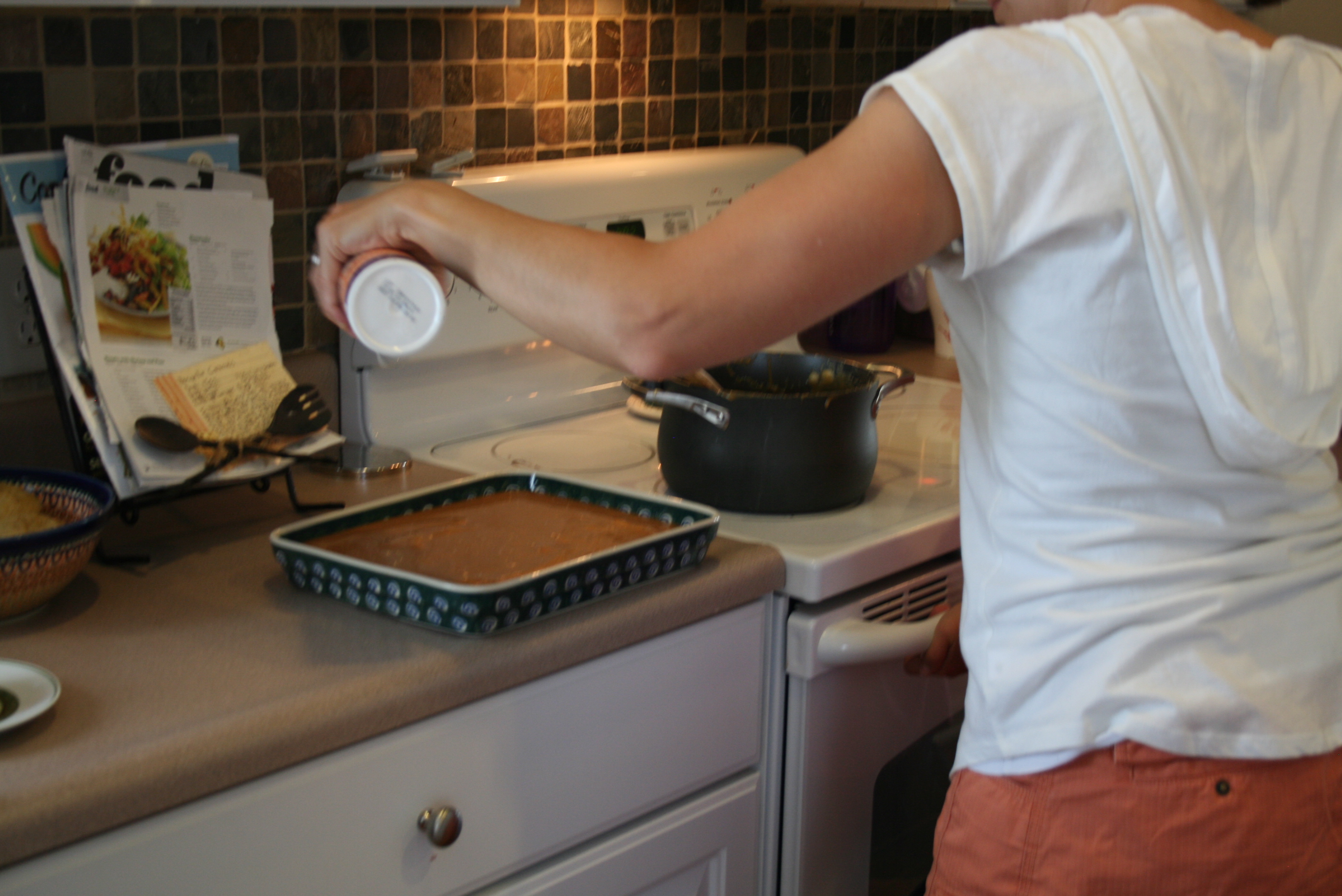 We threw the pan in the fridge to speed up the hardening process, then left to do some Goodwill shopping. I scored some BRAND NEW Ann Taylor camis and a pair of dressy, black, knee-length shorts. I’m still on Cloud 9 about trying on size 6’s and 8’s. Never. Been. Happier.