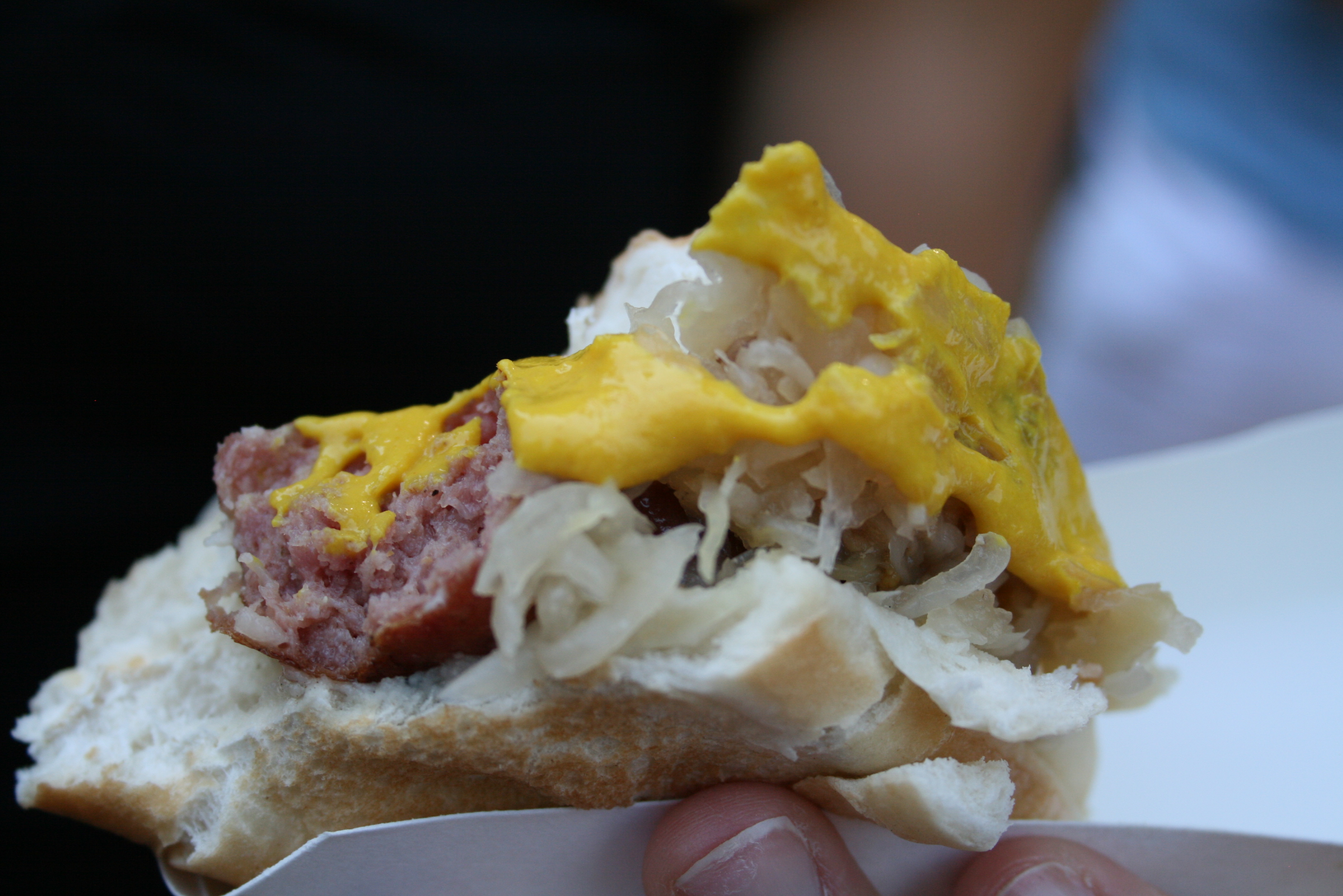 I like mine with sauerkraut and mustard. (Excuse my nails; I’m in desperate need of a manicure!)