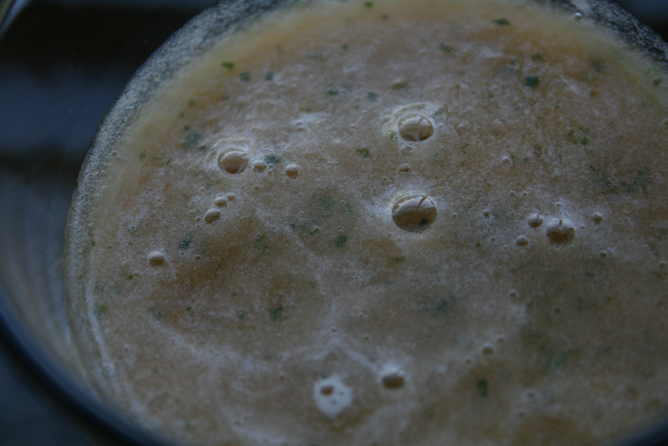 A “sweet melon mint” for my sweetie, which was cantaloupe and (obviously) mint, with a bit of honey and some ice. It was so random that I’d have both those ingredients on-hand at once (I HATE cantaloupe so I rarely buy it), so I just had to give it a try right now.
