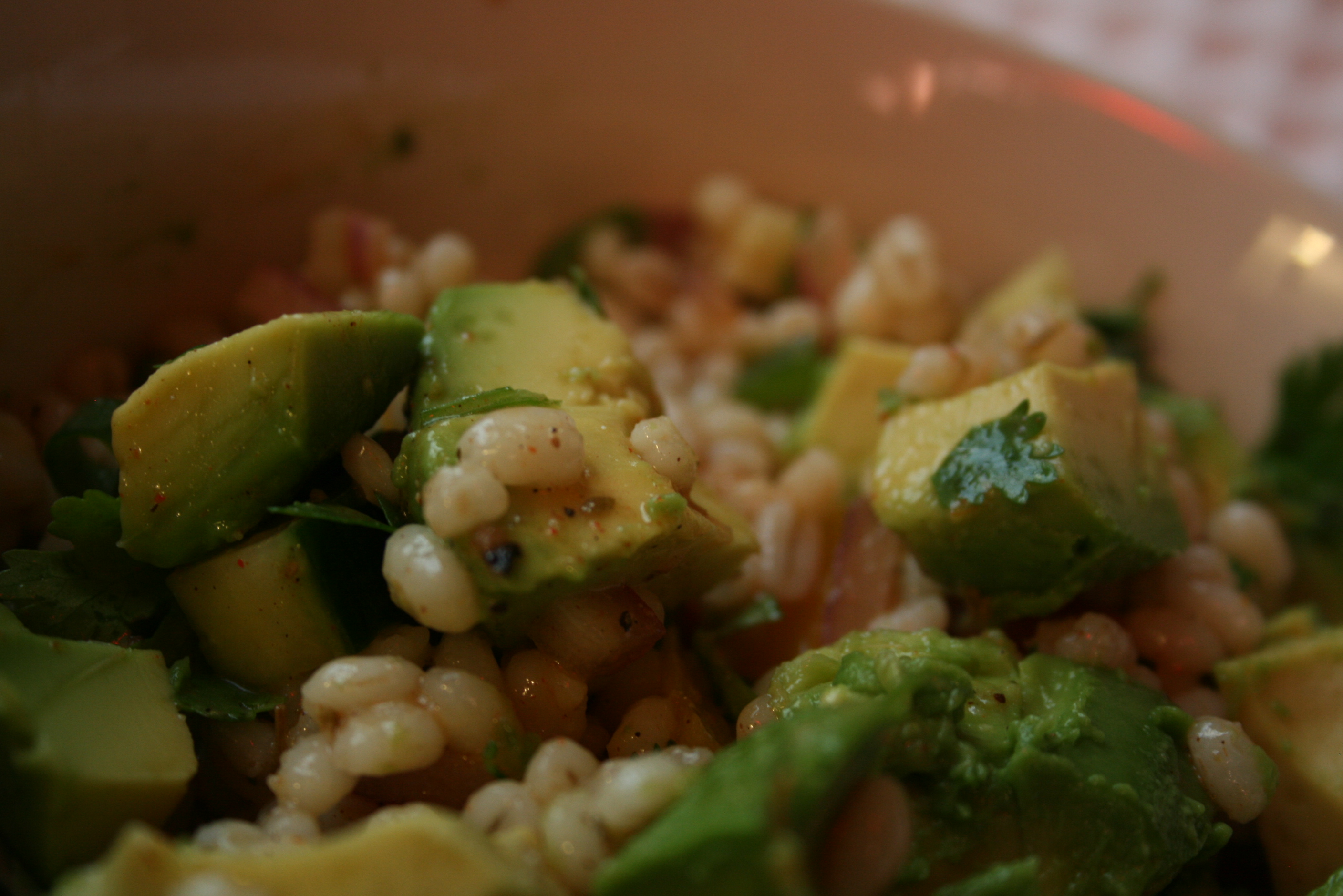 When we finally got back to the hotel, I hurriedly whipped dinner together. Spicy Southwestern Tabbouleh, or, in this case, barley. If you don’t know, tabbouleh is a classic Middle Eastern dish made with bulgar, parsley and mint. I had just used up the last of my bulgar, so I substituted barley and cooked it earlier in the day.