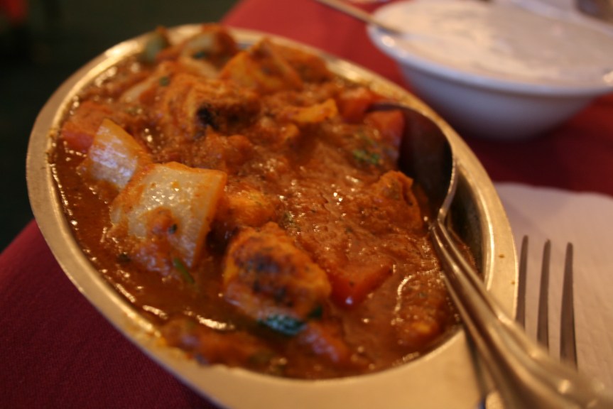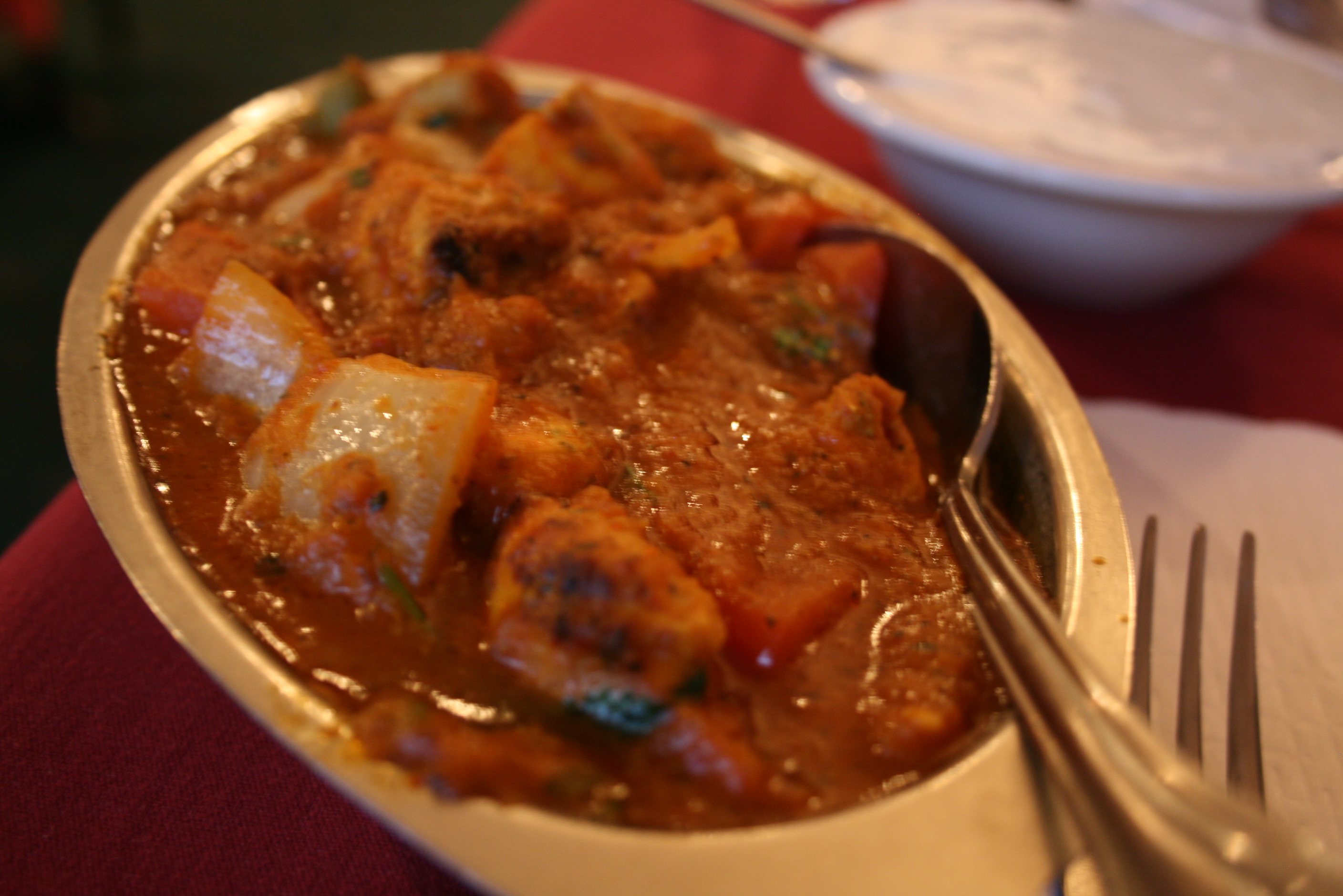 We got an order of naan and raita–I cannot have Indian food without it! I’m surprised these photos actually turned out OK for the lack of light. Now, if only I remembered what setting I was using…