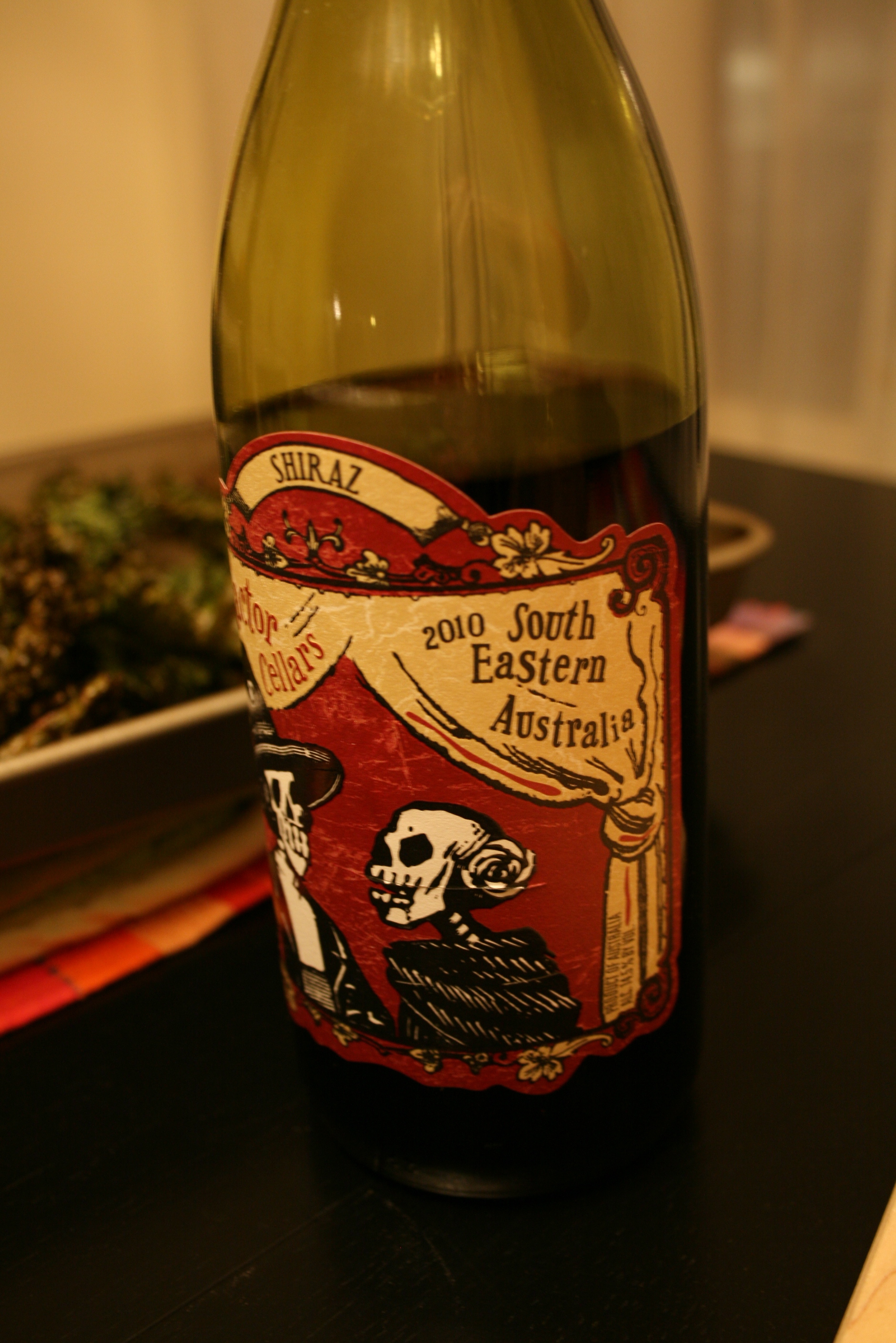 I opened a Shiraz from my last trip to Trader Joe’s. This was the perfect meal for red.