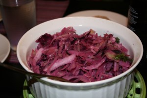 I also made a “sweet hot” cabbage recipe Andrew loves. It’s another Food Network magazine find and since he won’t eat sauerkraut, it’s my go-to cabbage dish for meals with pork and apples or sausages or something. And anytime I make coleslaw I have to bring out all the cabbage recipes I can find; I refuse to buy pre-cut coleslaw mix, and cutting up those heads of cabbage yield SO MUCH. After making some coleslaw and this recipe, I still have a ton left, so I’m trying a sauteed cabbage recipe in a couple nights. Thankfully, other than drying out a bit, cabbage keeps for awhile in the fridge.