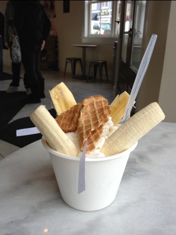 The added peanuts, caramel sauce, banana and whipped cream help to tone it down. You even get a fortune cookie! My only regrets: not ‘trying’ Salty Caramel’ and ‘Wildberry Lavender.’ I know what they taste like, but no trip to Jeni’s seems complete without them.