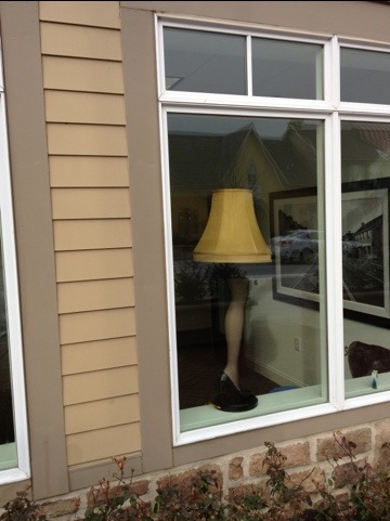 I would wear the lampshade if could have real legs like that one in the window!!!