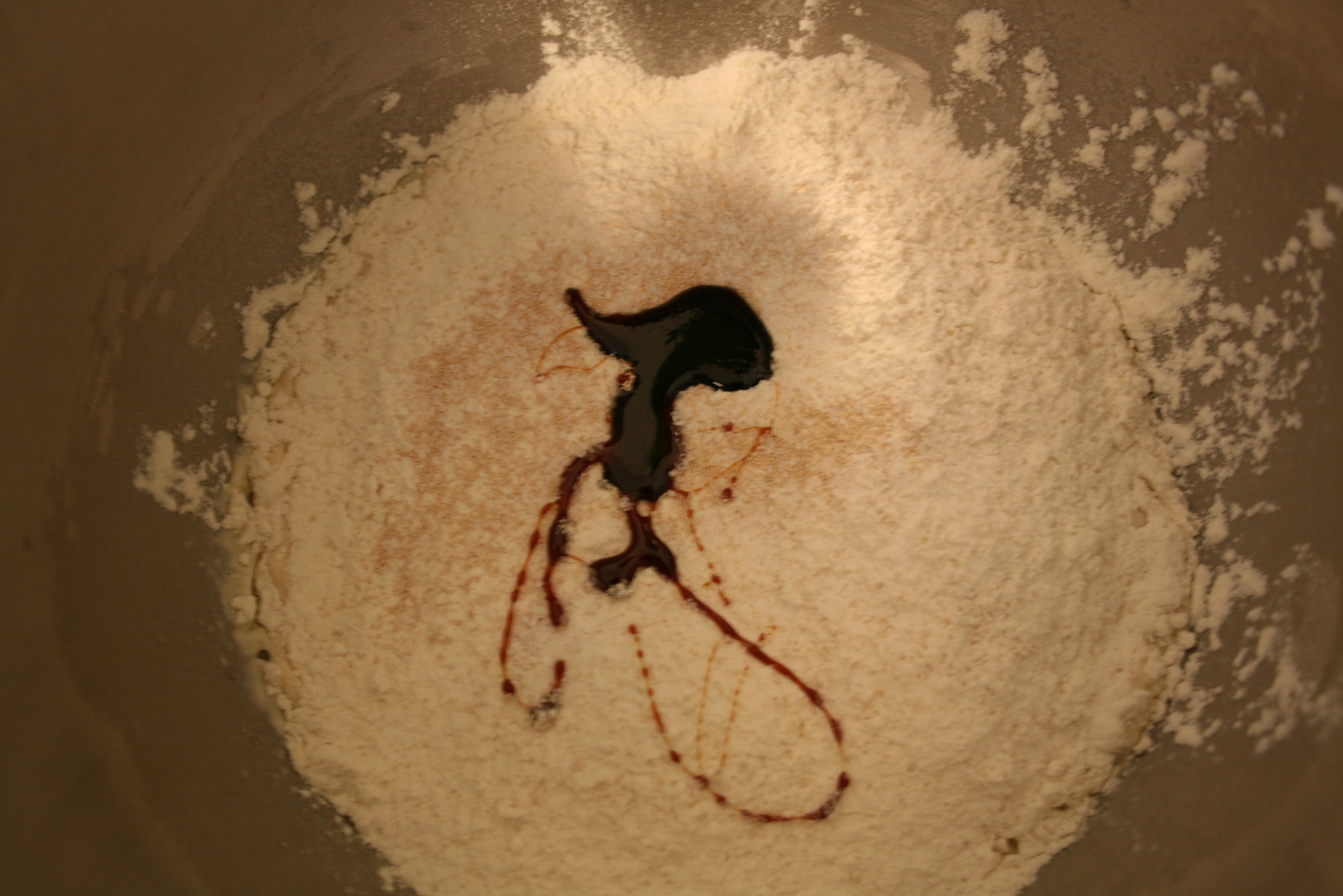 I halved the recipe (how in the world would the two of us be able to eat 12 bagels before they got stale?) and put the ingredients into the bowl of my mixer.