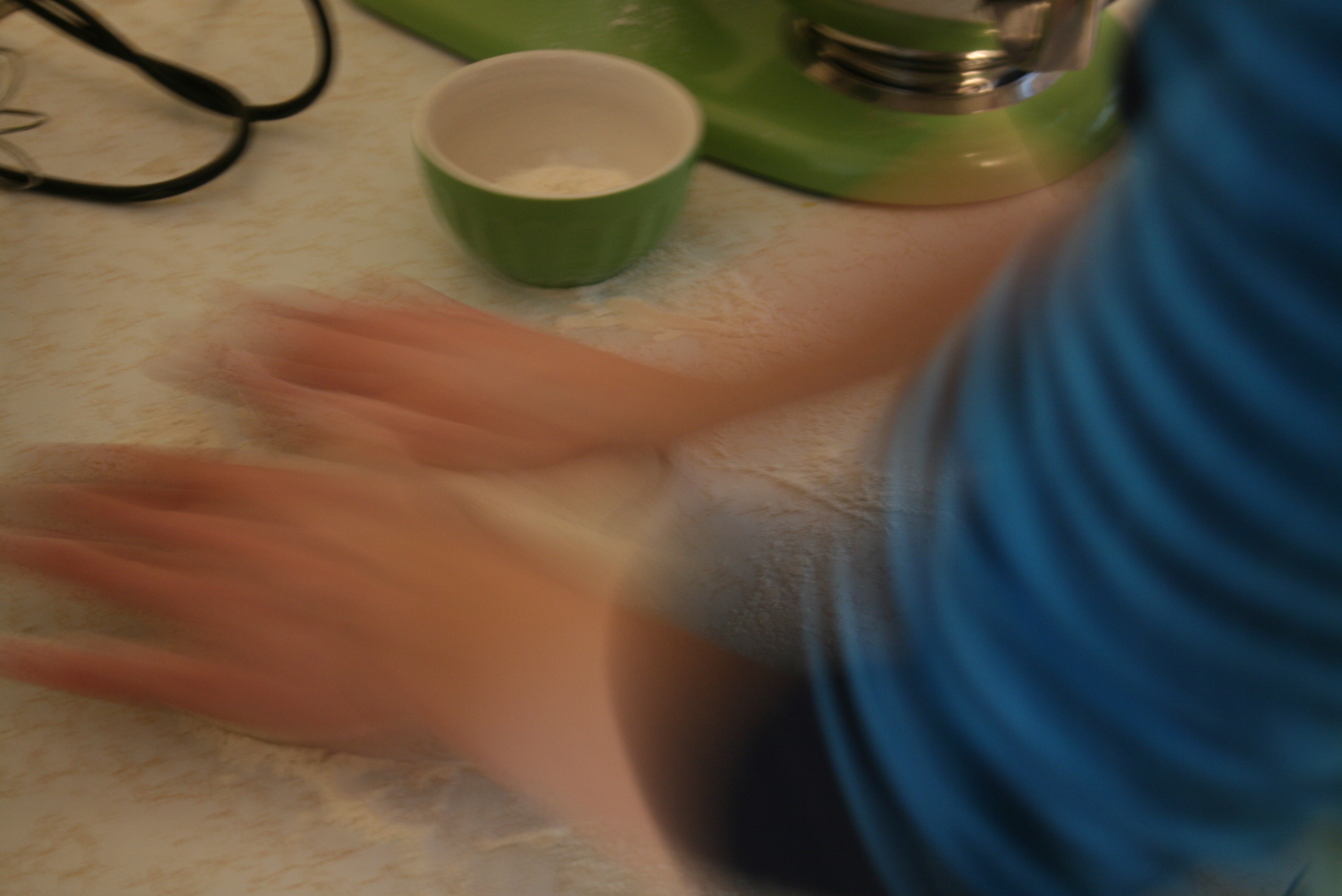 After a 6-minute go-around in the mixer, you knead the dough by hand for just a minute or two.