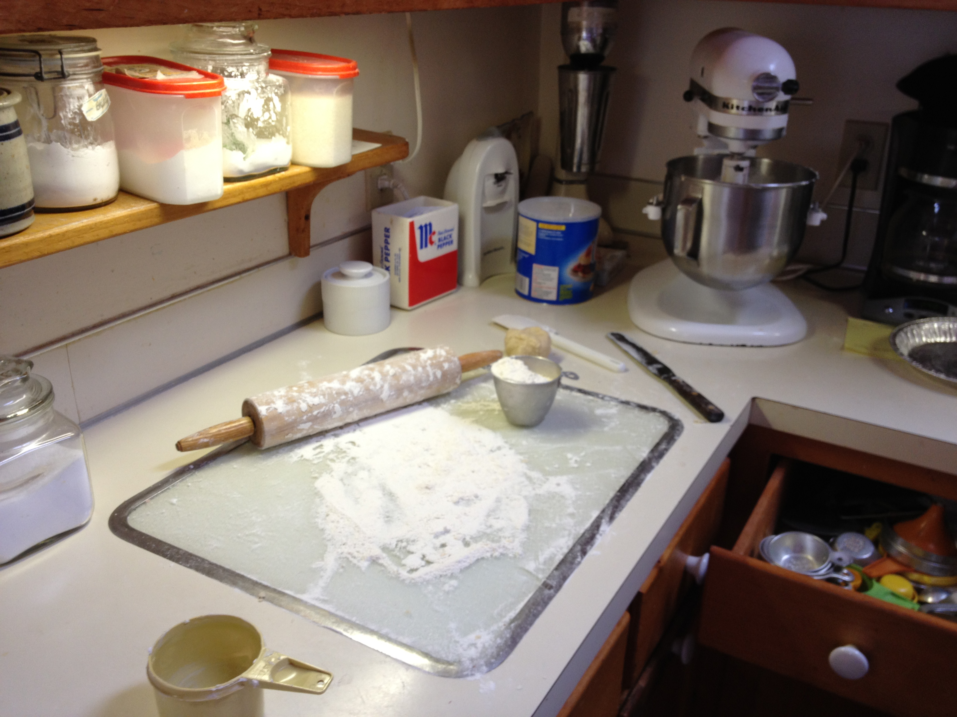 She was prepped and ready to go before I even arrived; she even has a handy pie-rolling station/cutting board built right into her countertop.
