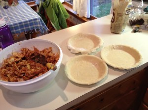 Anyway, his mom, Ann, is famous around here for her pies–she even had a small home business going for awhile–and pie is one thing that makes me nervous (I’m always afraid I’m going to mess up the crust), so I enlisted her help.