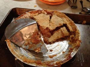 Sadly, I forgot to take a photo of the baked pie…by the time I remembered, it was almost gone! The crust looked pretty nice–one of my best, perhaps–I can tell you that.