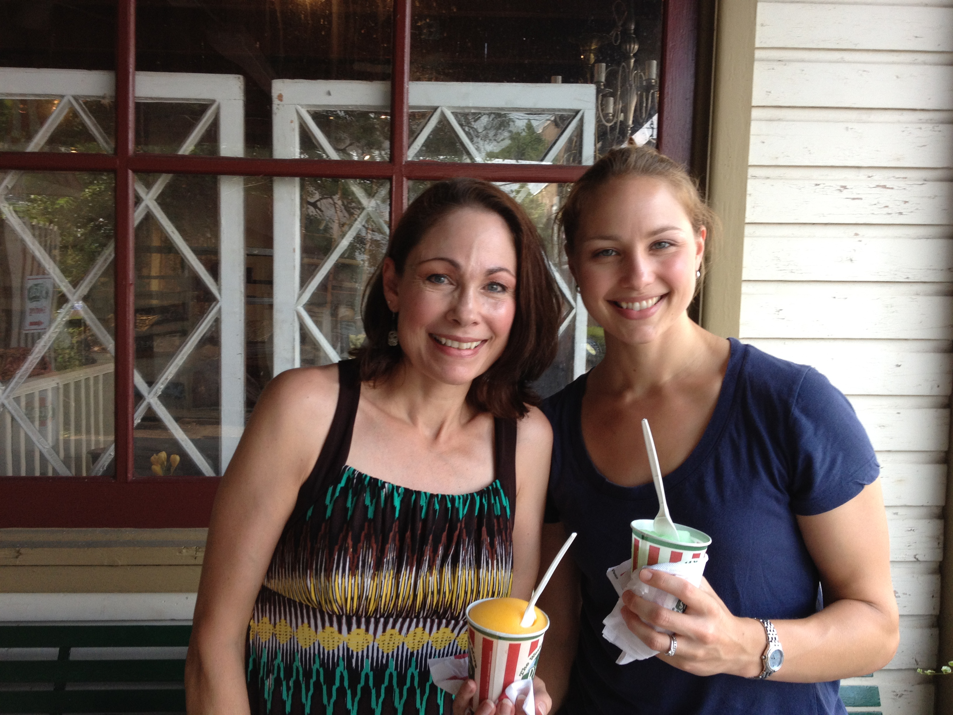 We walked next door so I could get Mommy her first taste of Rita’s, and what do you know? Out she came with my purple fruit basket as a surprise! She said she wanted her daughter to have one from her mother, just like her.