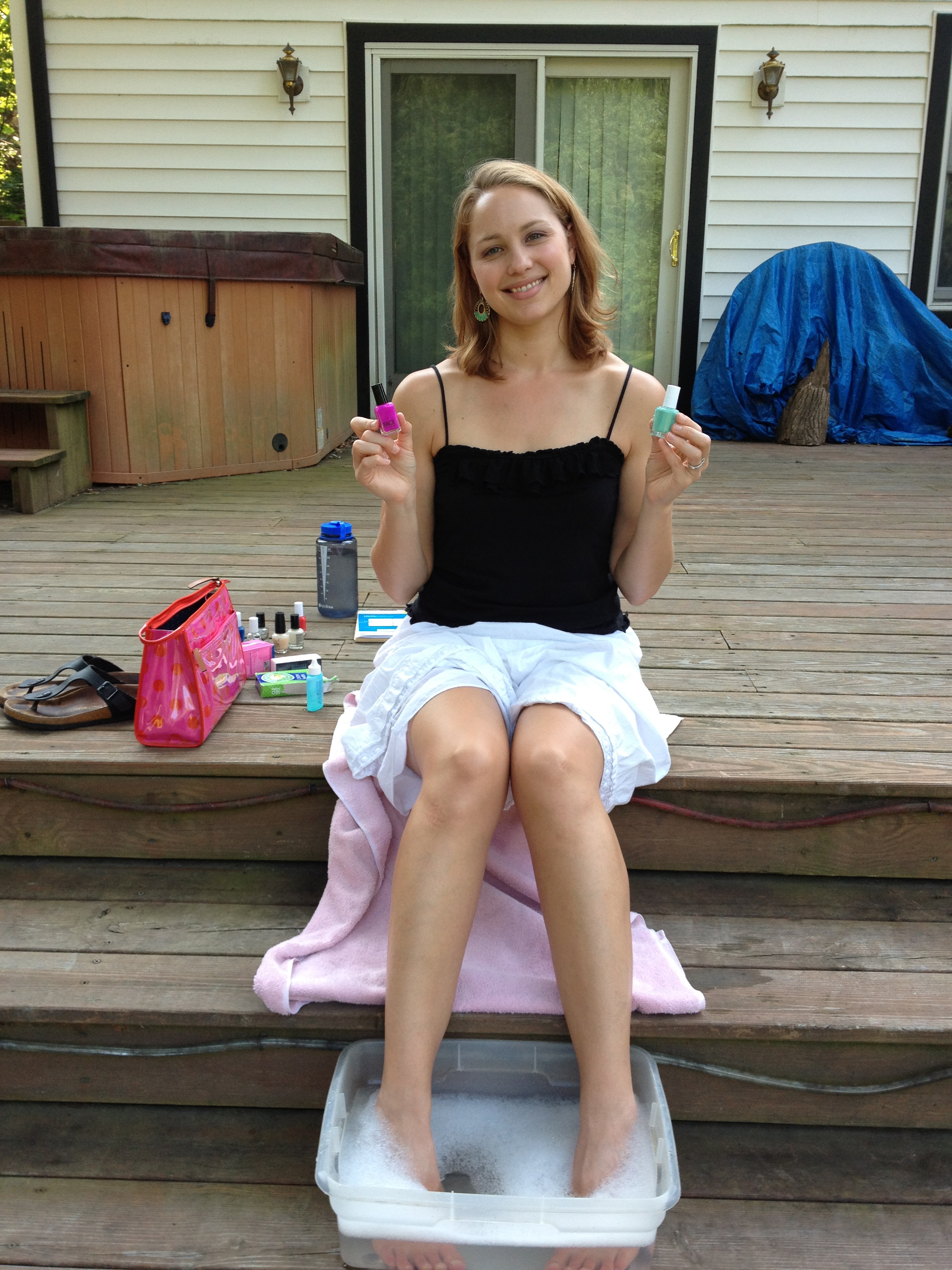 I took the afternoon as an opportunity to do my nails on the deck while Danika played with the hose.