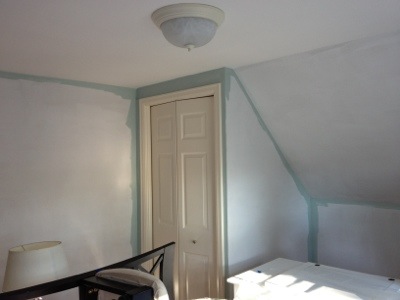 The last time I said that while painting, I had discovered that our trim and doors in our house in Ohio weren’t white. I was painting our bedroom blue and while the trim looked white, it was really more of an off-white, or even cream. I was devastated and immediately proceeded to paint every baseboard and door frame ‘Ultra White’ from Valspar. (After much begging and pleading with Andrew and weeding out the wheat from the chaff on Craigslist, I hired someone to paint the doors.)