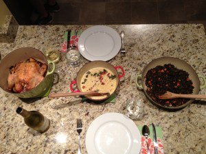 First of all, what was I thinking that I could roast a chicken, whip up a corn pudding AND a wild rice dish all in one night?