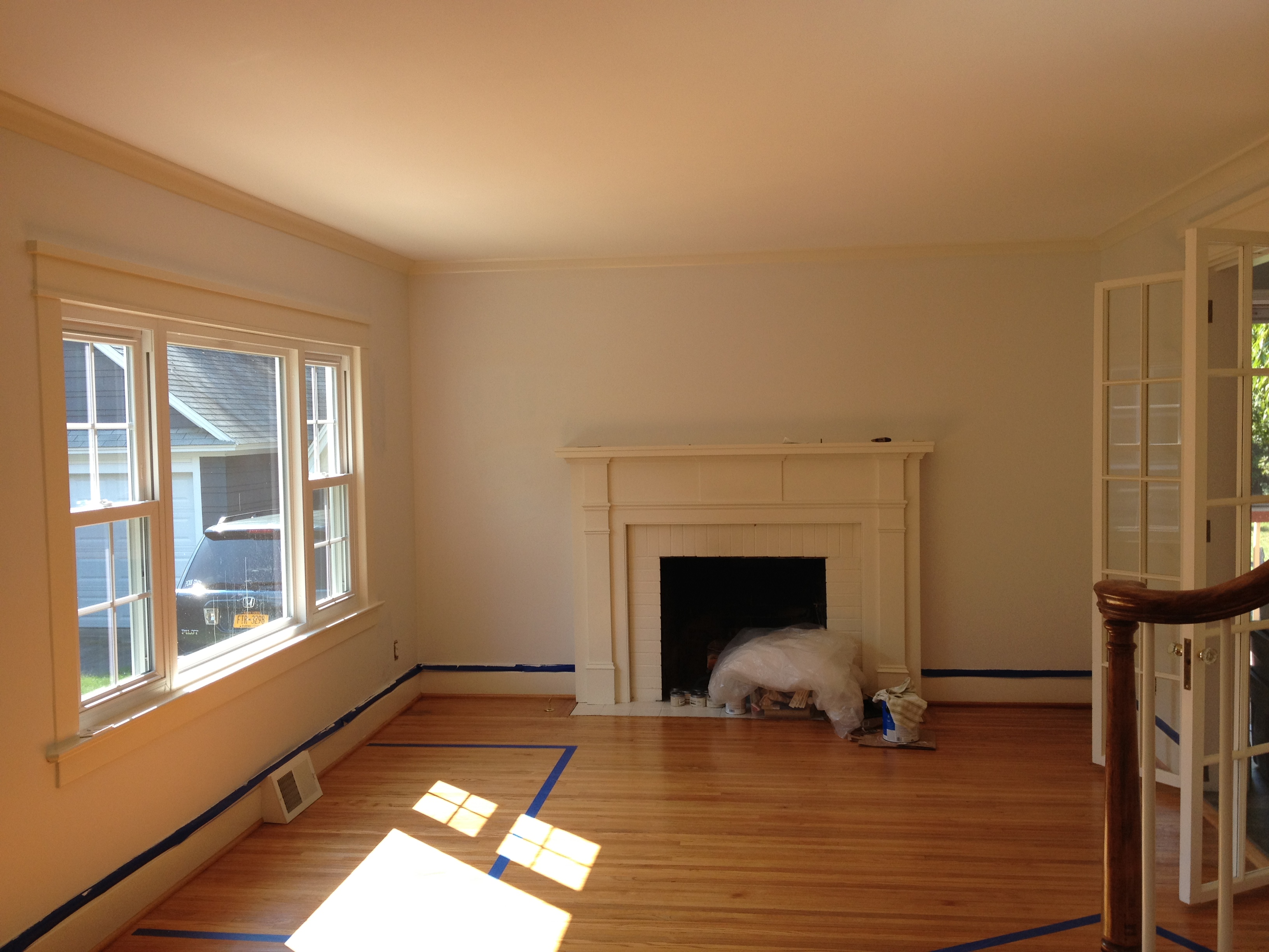 So, project number 4,873: Paint baseboards, moulding, doors and frames (and apparently the mantel, too) in the ENTIRE HOUSE. I did this in Ohio, so I know exactly how big a project this is. Sheesh.