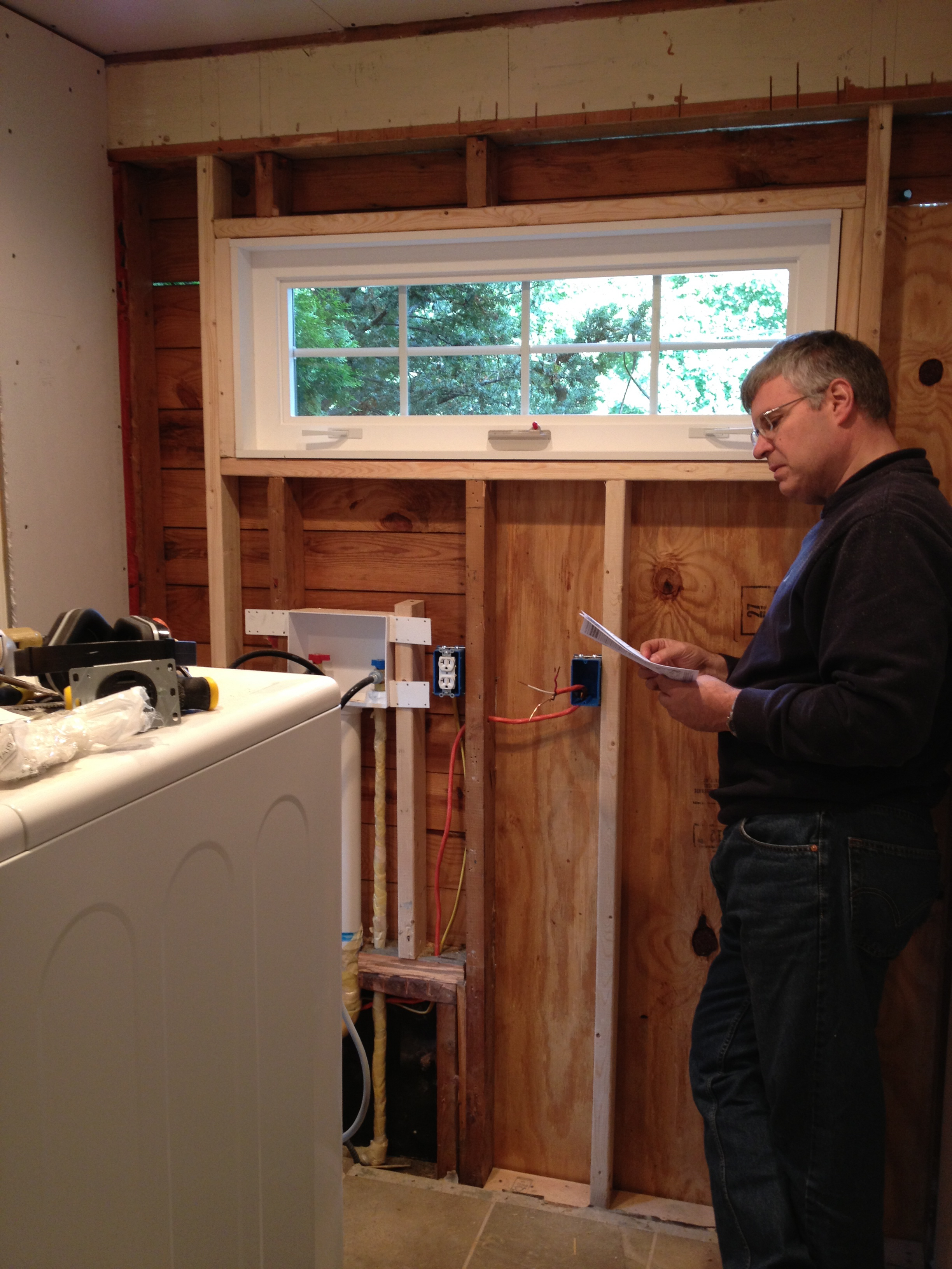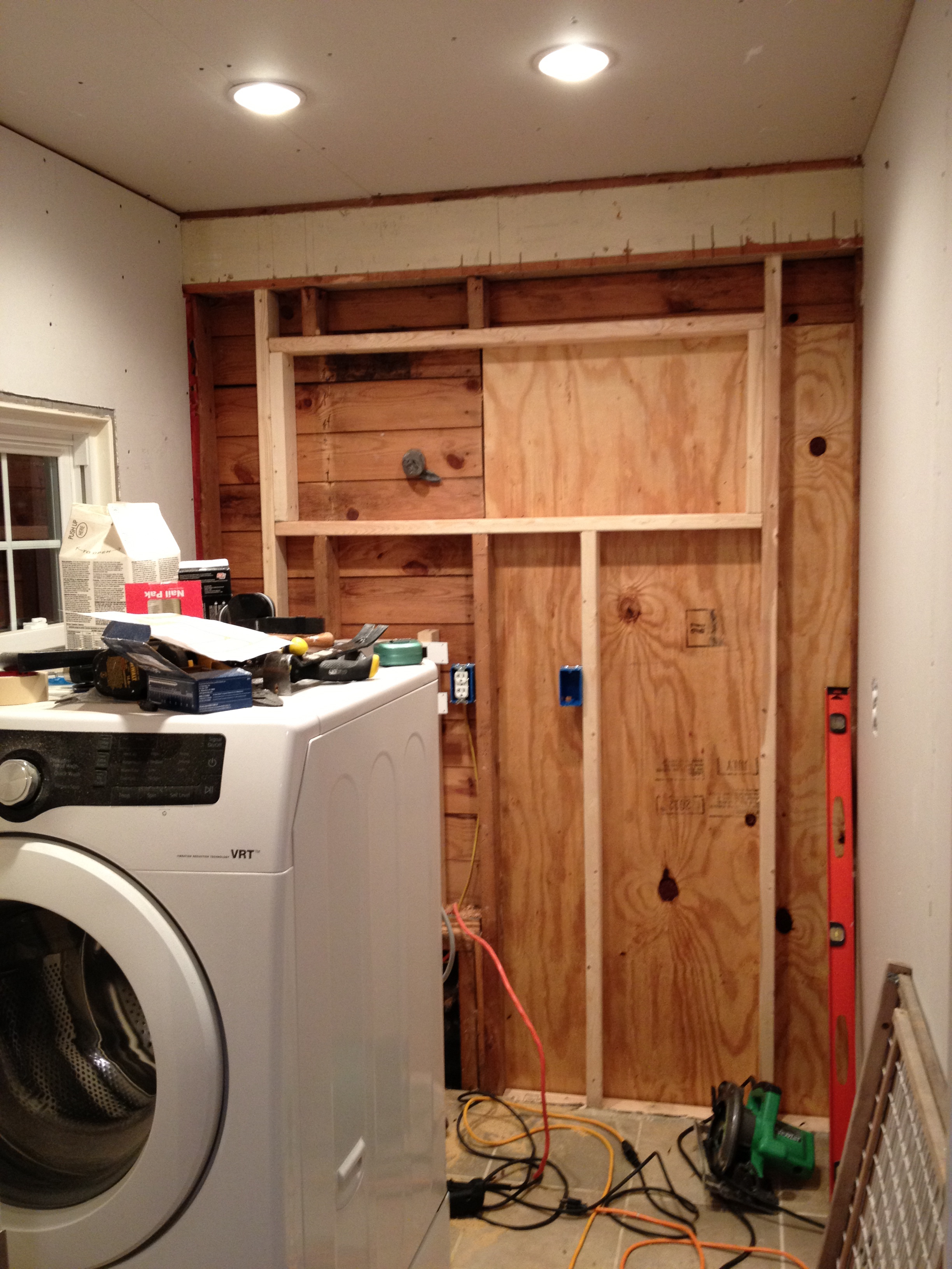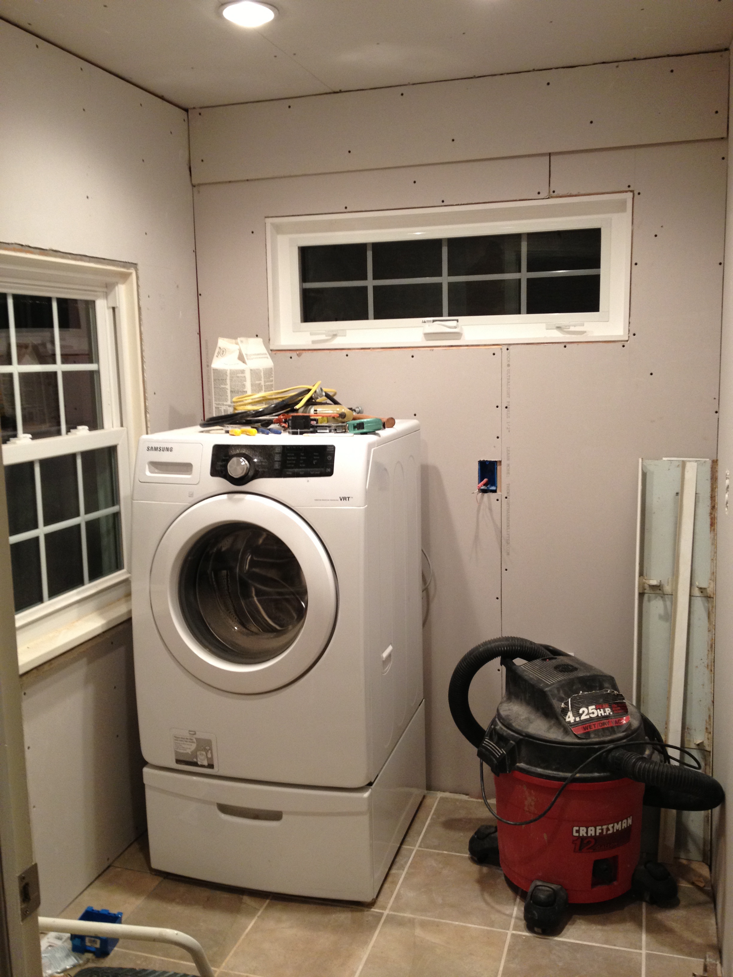 Andrew started his final push on the laundry room at the end of last week and into the weekend. That morning, it looked like this: