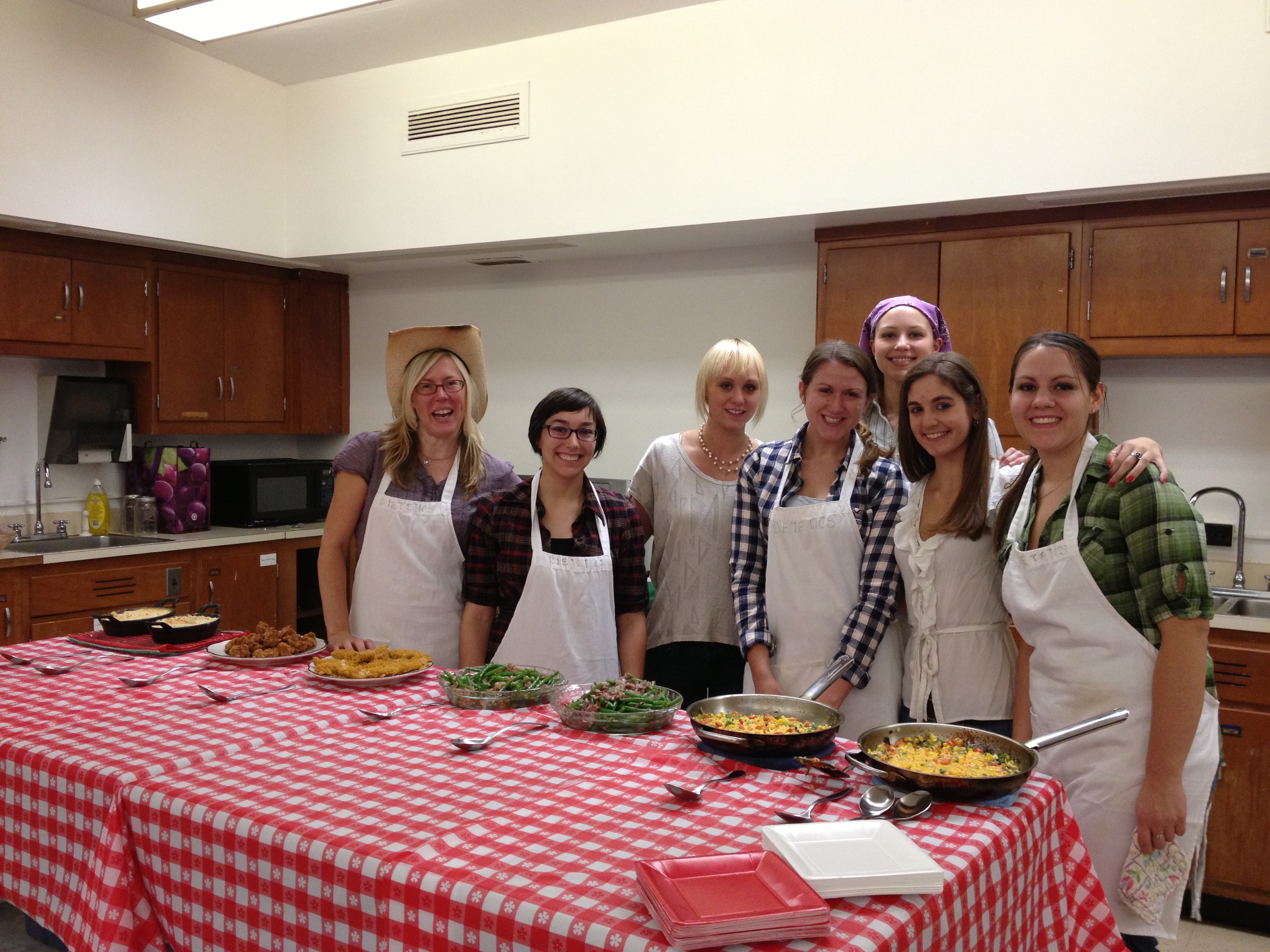 I’m in the back peeking over two of the girls. We had to come up with 10 recipes (5 regular, 5 fat-modified), and had the rest of the people in our lab cook them and perform a blind taste-test. That was Wednesday, now THIS coming Wednesday we present our findings and a bunch of information as well as fat-reduced products you find at your grocery store. I made two versions of fried chicken, and I’ll blog about it later.