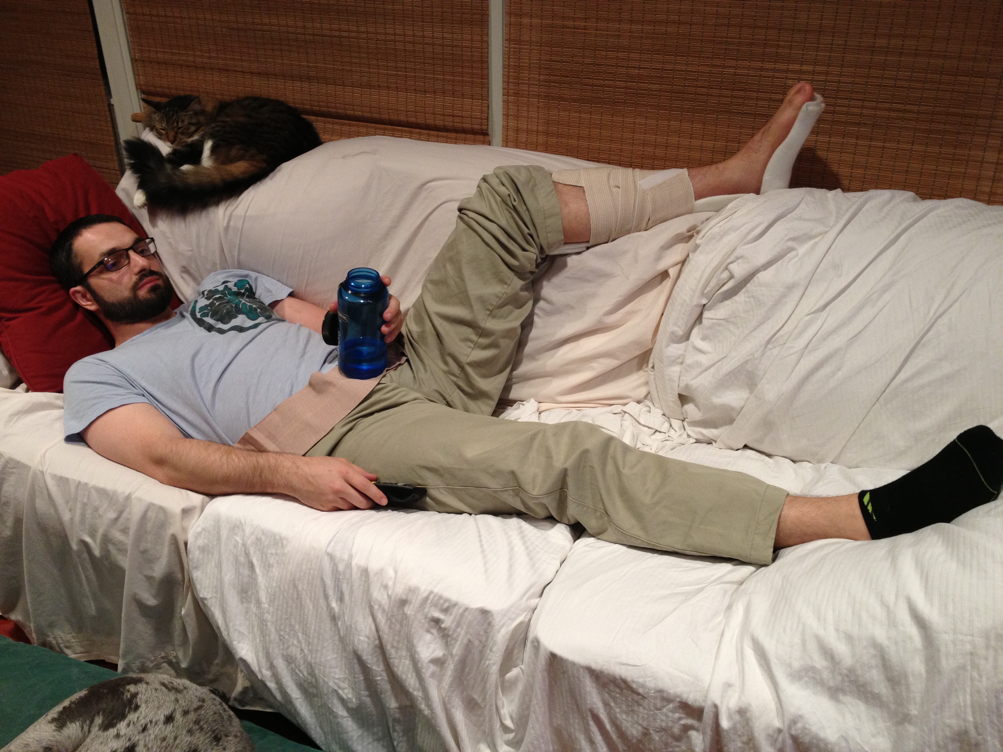 Thankfully, it’s his left foot, which means that–technically–he CAN drive (heck, he drove himself to urgent care!), and will be able to to so at some point soon. Until then, he can bum rides to work with his dad and he’s pretty good on crutches. Gosh, it’s been a HUGE BLESSING having Andrew’s parents here.