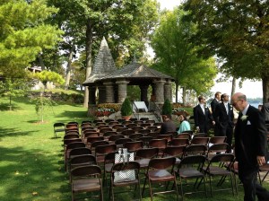 We were blessed (truly–there has been rain all over the forecast this week!) with sun for the ceremony despite some cooler temps. I wore my beautiful trench coat the whole time!