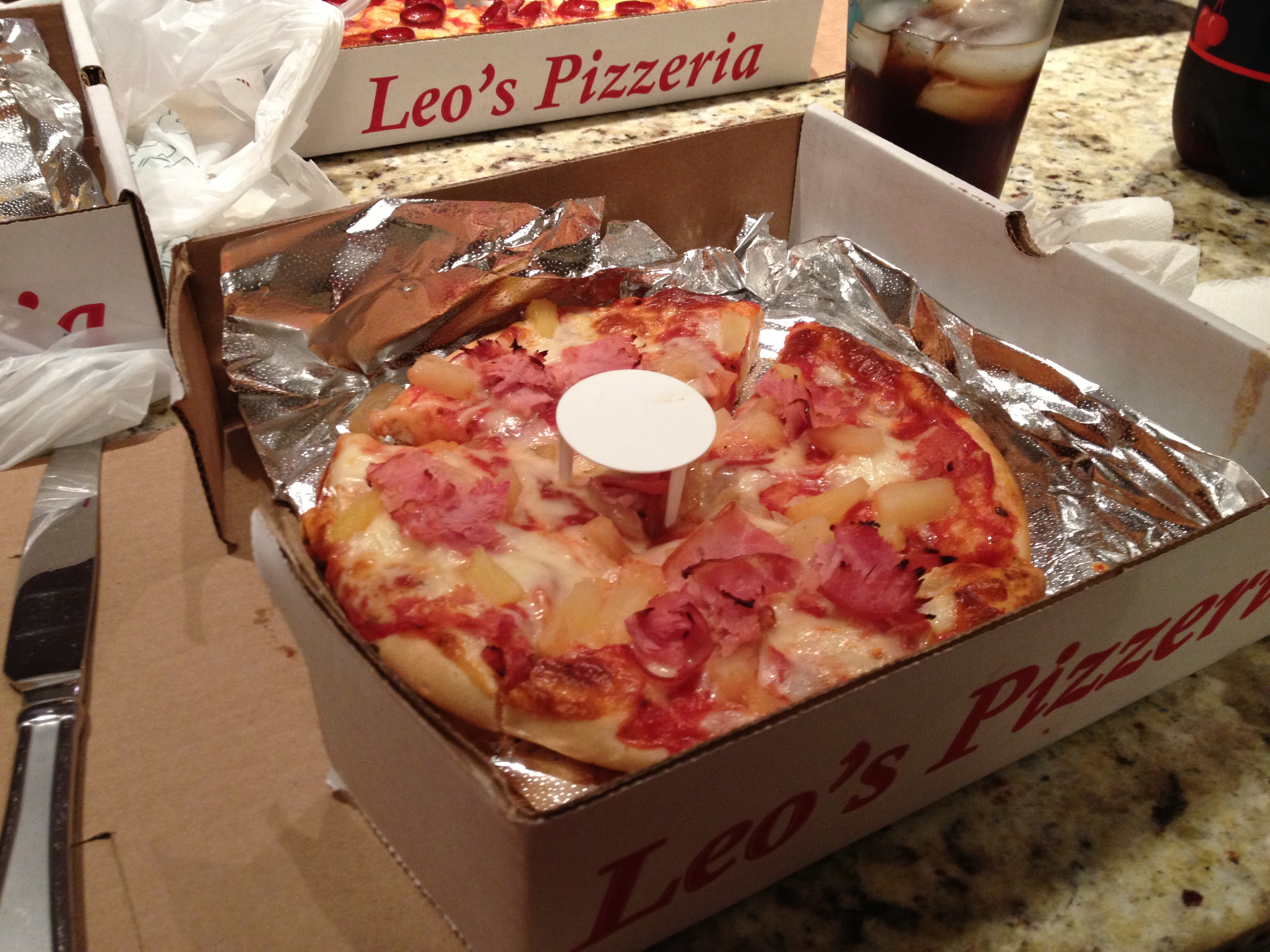 However, there is hope: Our neighbors have gotten pineapple on their pizza before (is it weird that I know that?), and I don’t think they got it from Leo’s, since it’s so new and all. Must ask them from where they order their pizza…