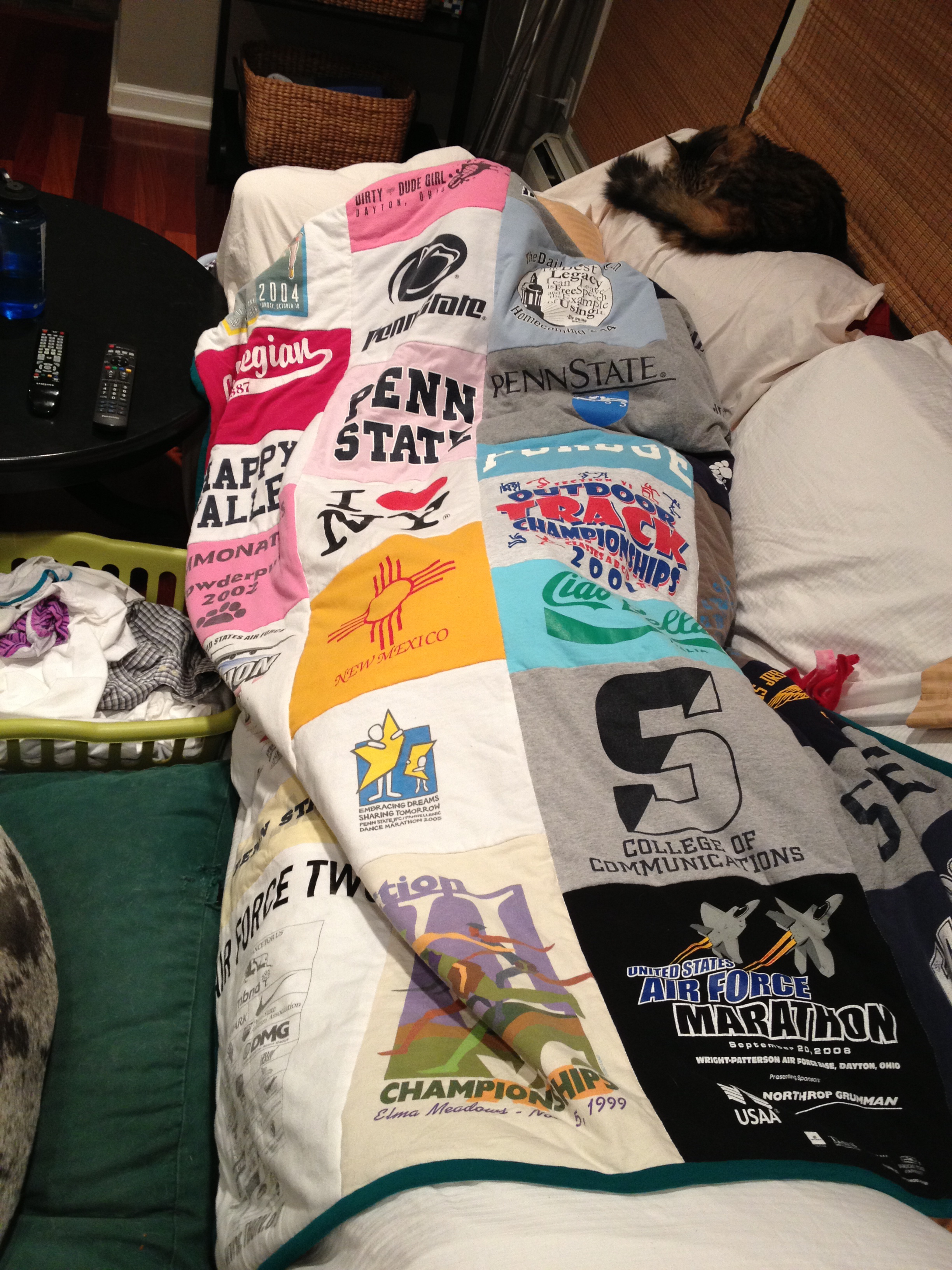 I made pumpkin pancakes, served with a little applesauce (what wouldn’t fit into our jars last night) and maple syrup butter. Andrew dined on two (well, one and a half) Manhattan Bagel “everything” bagels–I snacked on one on my way home from my run.