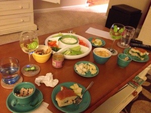 After a quick Target stop, we decided we’d do dinner at Emily’s instead, so we grabbed some pita chips and spinach, too.