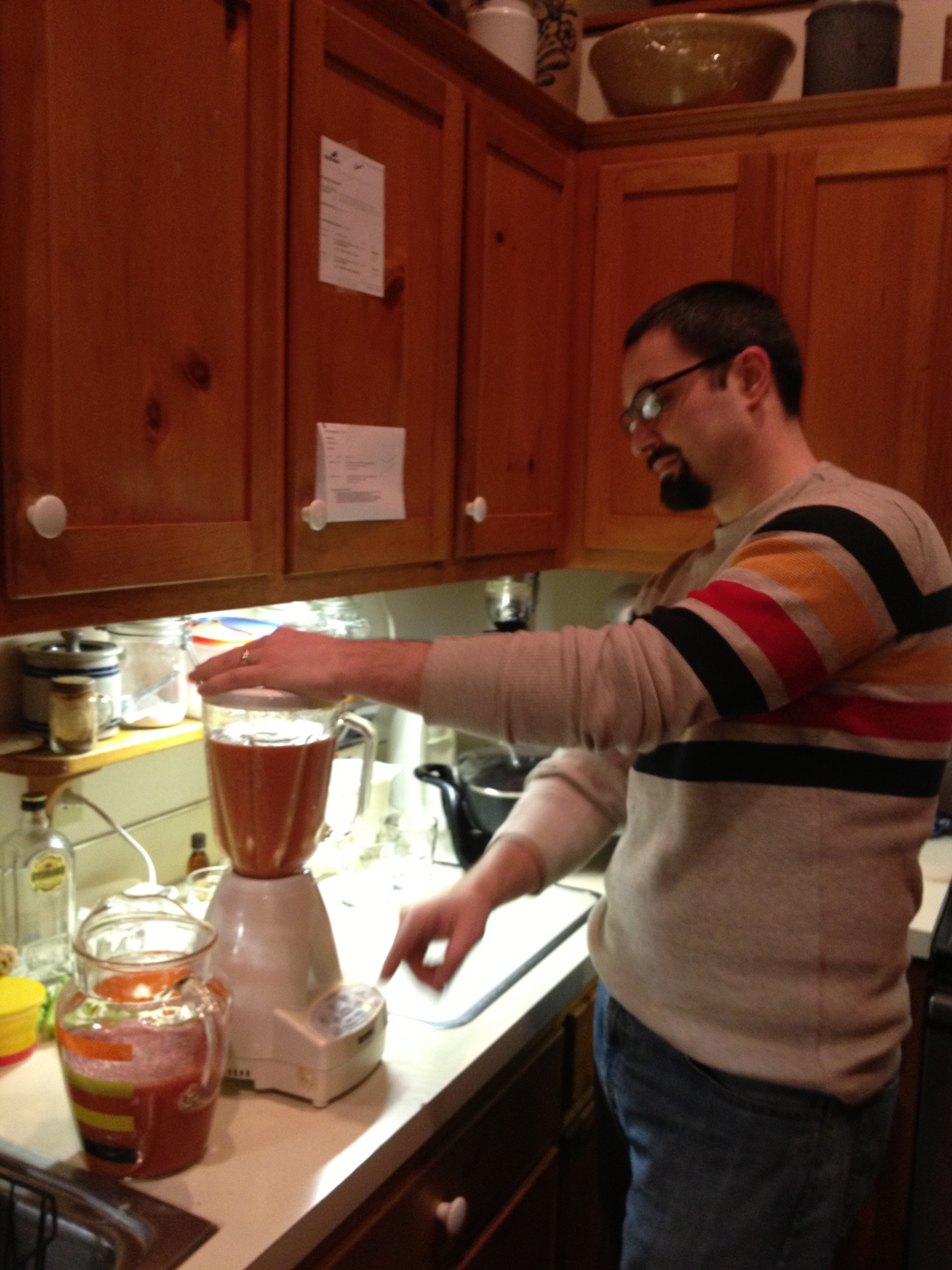 So, of course we had to plan a pancake party with Alex’s parents in order to try out the recipe. Somewhere along the way, we decided to make bloody marys, too….