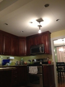 See all those holes in the kitchen ceiling? Those are the new recessed lights! And the best part? Andrew did them all in like, a couple hours. SERIOUSLY. Tomorrow, he’ll tackle the electrical.