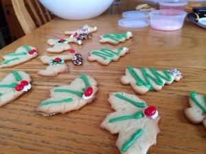 The other day, I had a baking ‘day’ with Mrs. Nye.  We started at 10:30 a.m. and didn’t finish until 4:30 p.m., so it was quite an endeavor.  We made three batches of cookies–traditional sugar cookies, soft sugar cookies and gingerbread cookies.