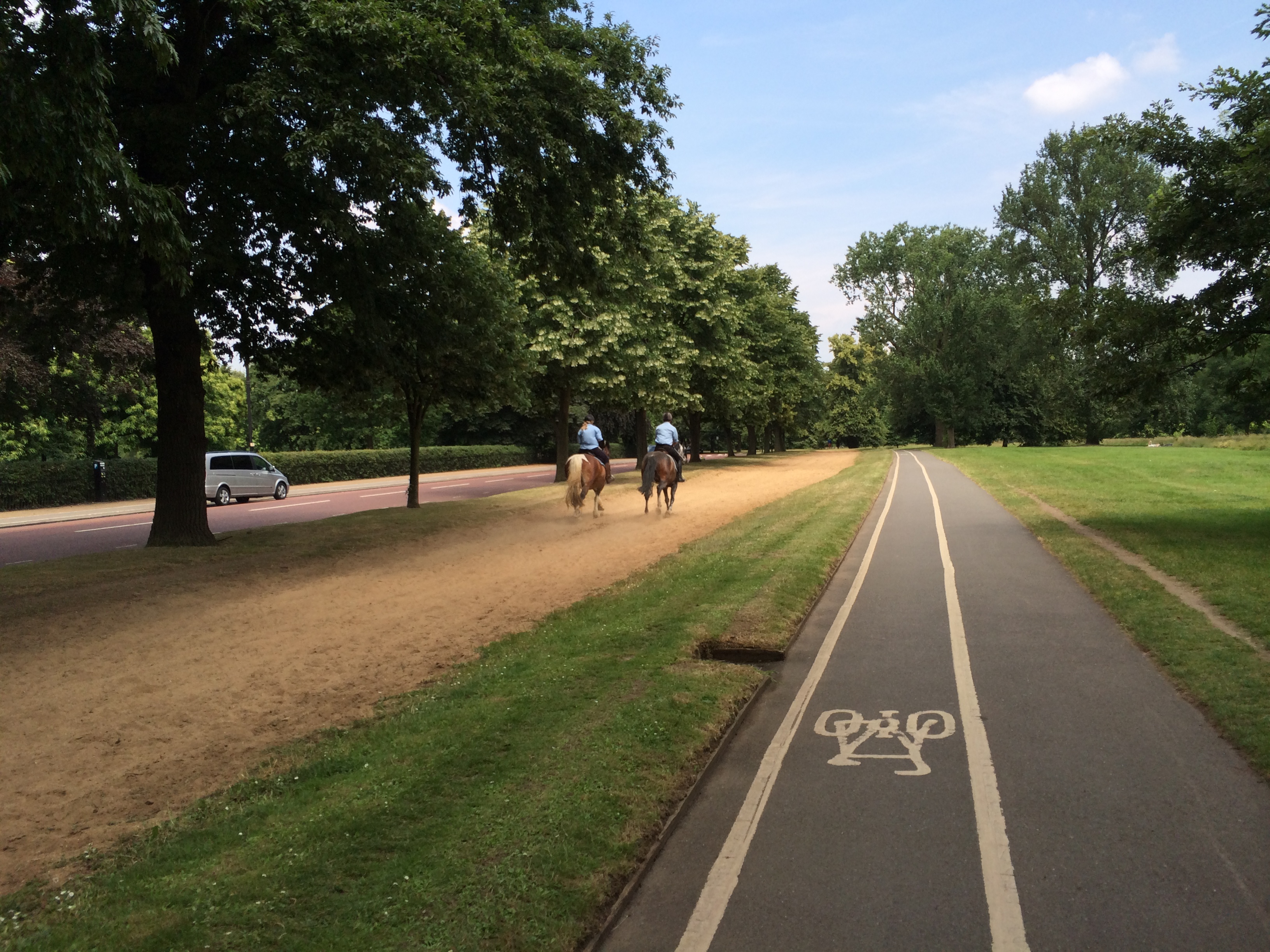 The next morning, we rented bikes (2 pounds for a 24-hour period as long as you dock the bike after 30 minutes of riding) and tooled around Hyde Park, which brought back memories of my first trip with mom. Apparently, she says, I fell while we were rollerblading in the park at some point…I have no recollection, but it sounds like me. I’ve never been good with things with wheels! (Seriously–teaching me to ride a 10-speed was nearly impossible, yet I felt completely comfortable on a giant horse. Go figure.)