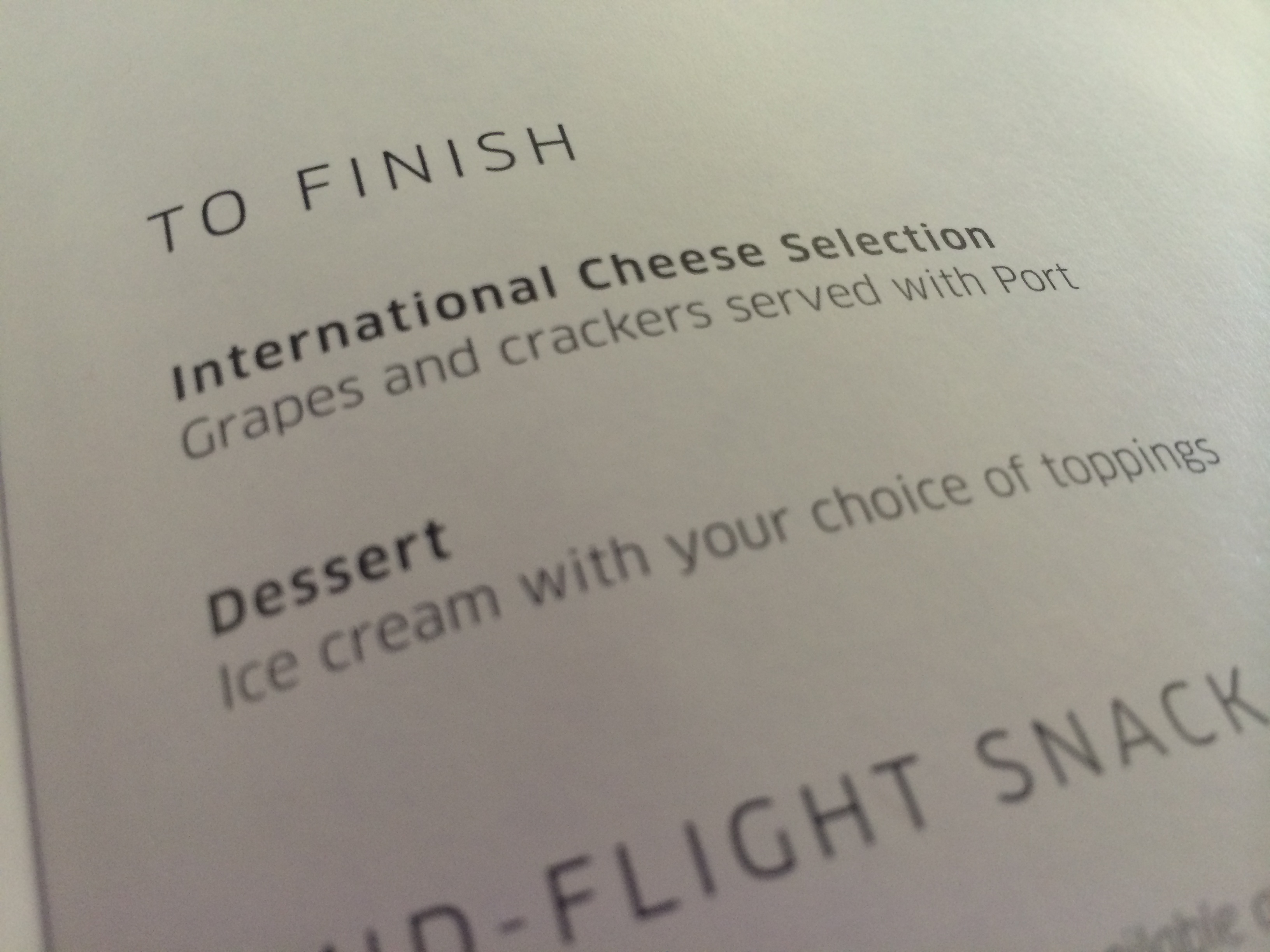 Once I finished my dinner, the flight attendant came around with a cheese cart:
