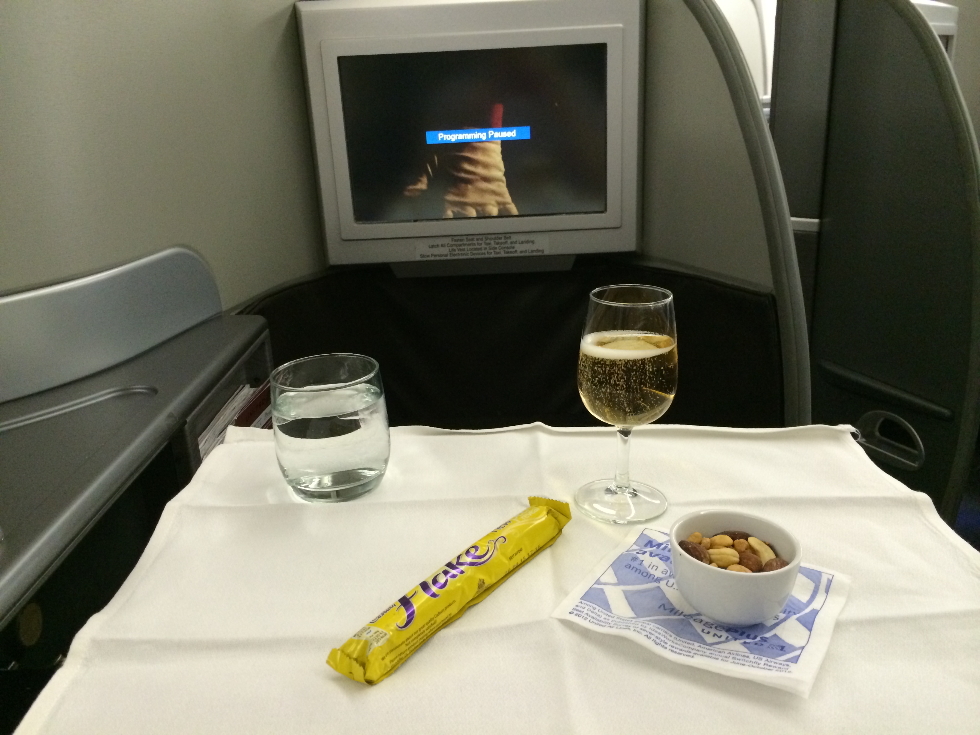 She said they serve better champagne once we’re in the air, so I made sure to sample that one, too, with the nuts they give and we shared a ‘Flake’ bar we’d gotten in London. The Cadbury brand (like the Easter eggs) is the chocolate of choice over there, and apparently these bars are popular.