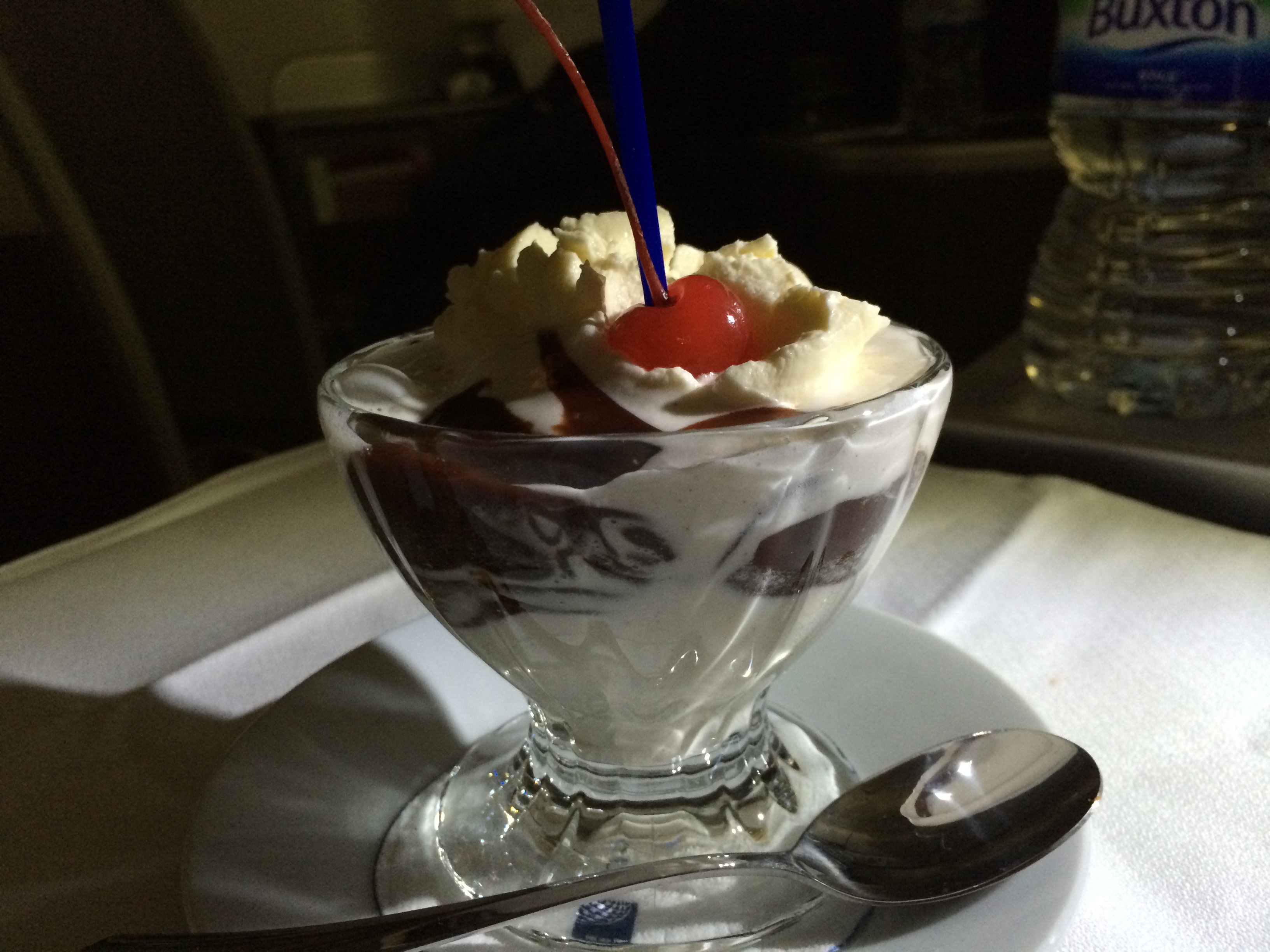 A fresh ice cream sundae on an airplane?! This girl was in heaven!