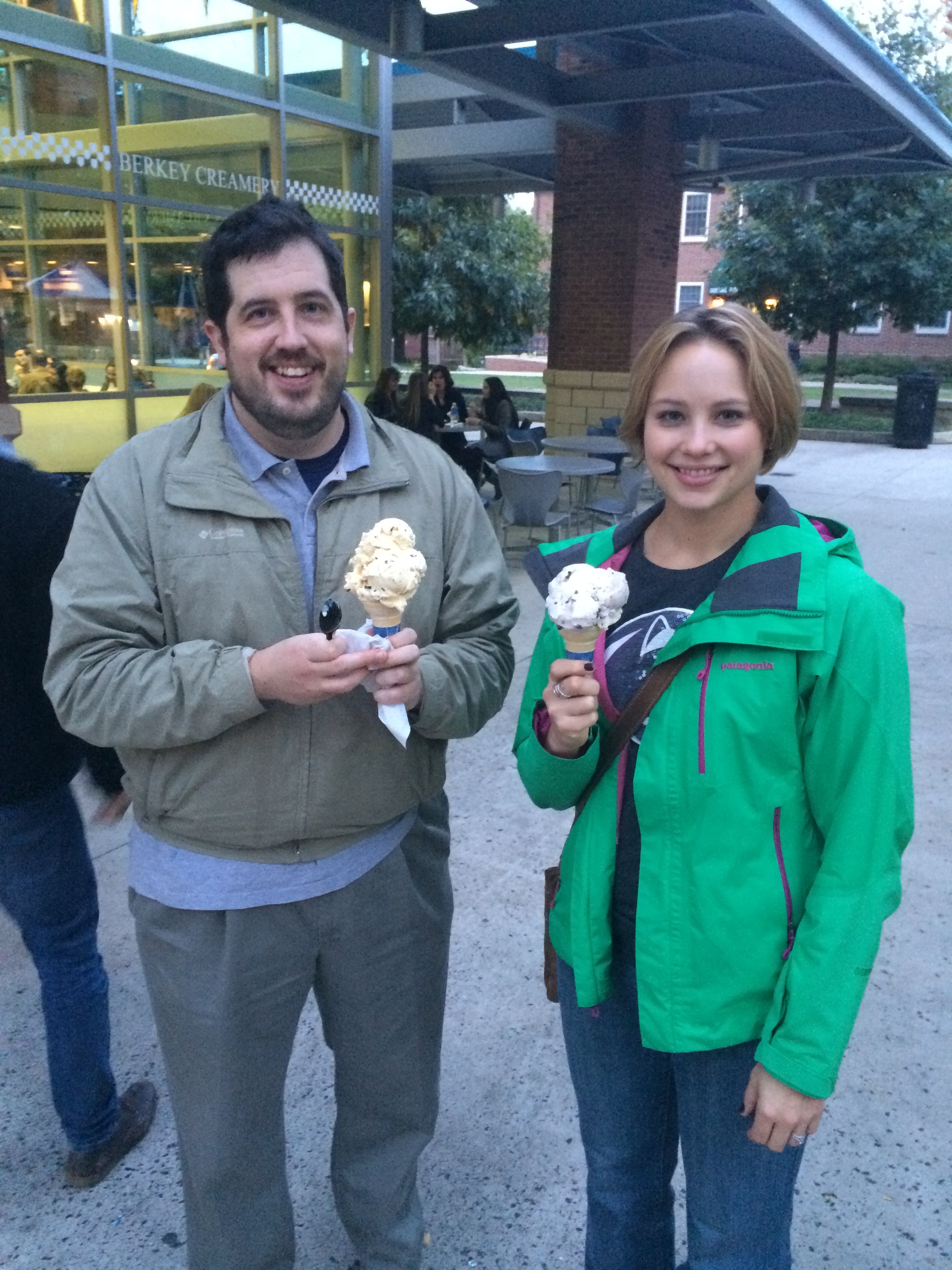 We ended up getting ice cream cones from the Creamery (one of Penn State’s claims to fame is its Food Science Department and ice cream) before heading back to Adam’s place to re-group and rest before going out to watch the football game.