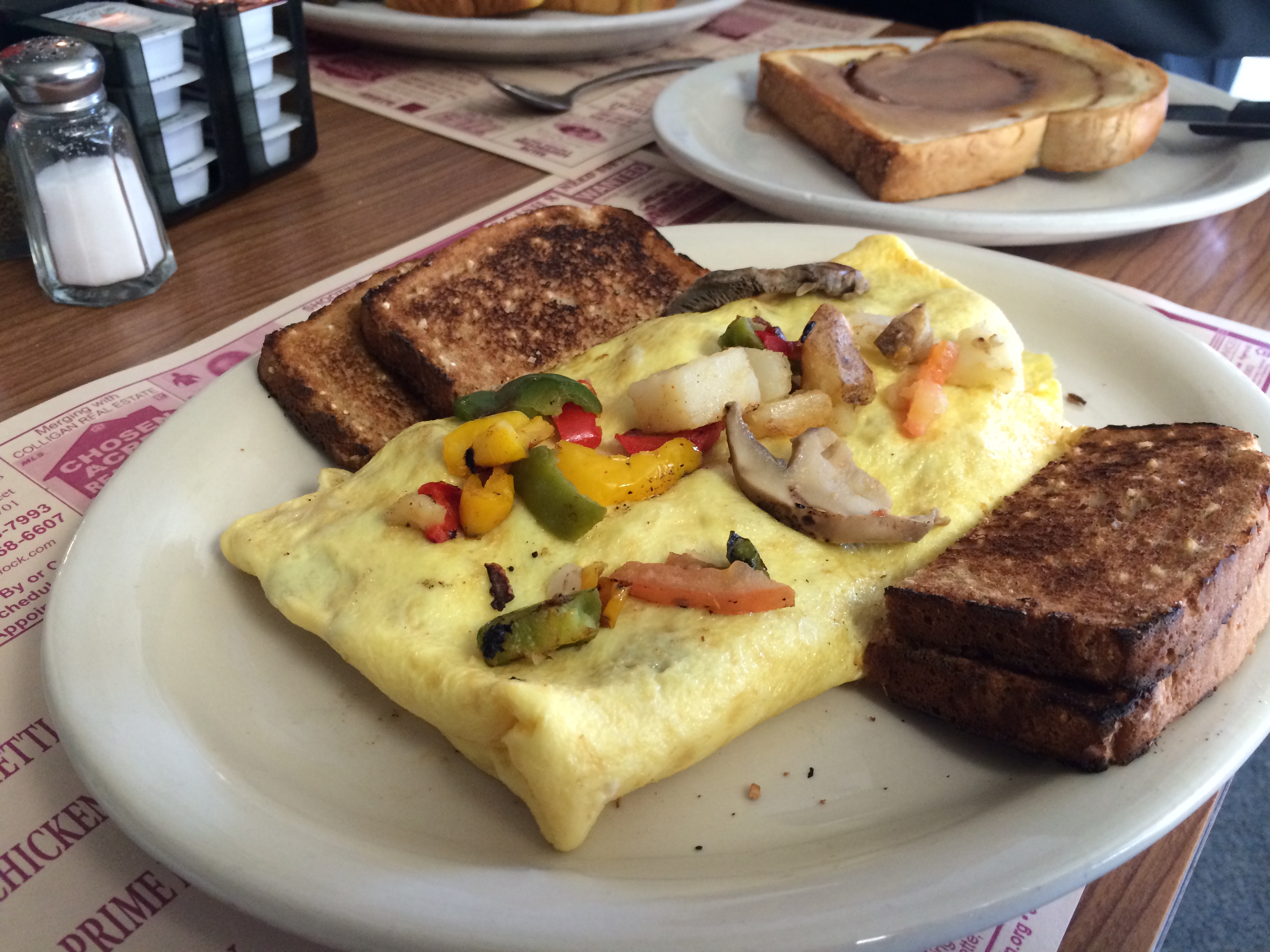 I ordered a veggie omelet, but could hardly stomach the ‘cheese’ on it… I’m not normally that picky, but something about it just ruined it for me. ‘Processed Cheese Food’ (a.k.a. American cheese) is not cheese, people!