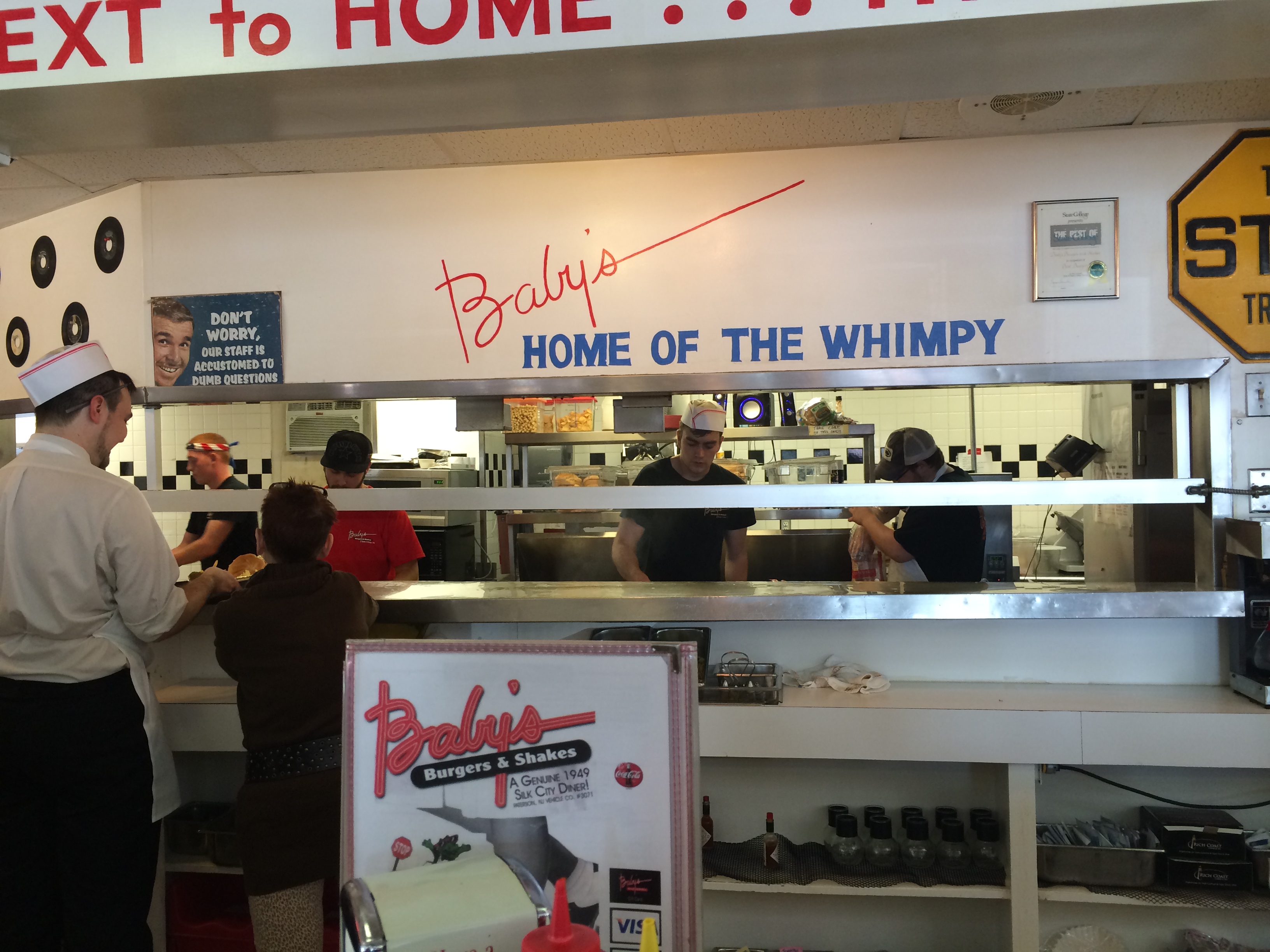 This was, perhaps, my favorite place to eat off-campus while we were students here. It’s a 50’s-themed diner that features all the typical greasy-spoon meals you’d expect and waitresses in saddle shoes. The chicken ‘wimpy’ basket (two slider-sized burgers) is the only thing I’ve ever ordered. And peanut butter milkshakes.