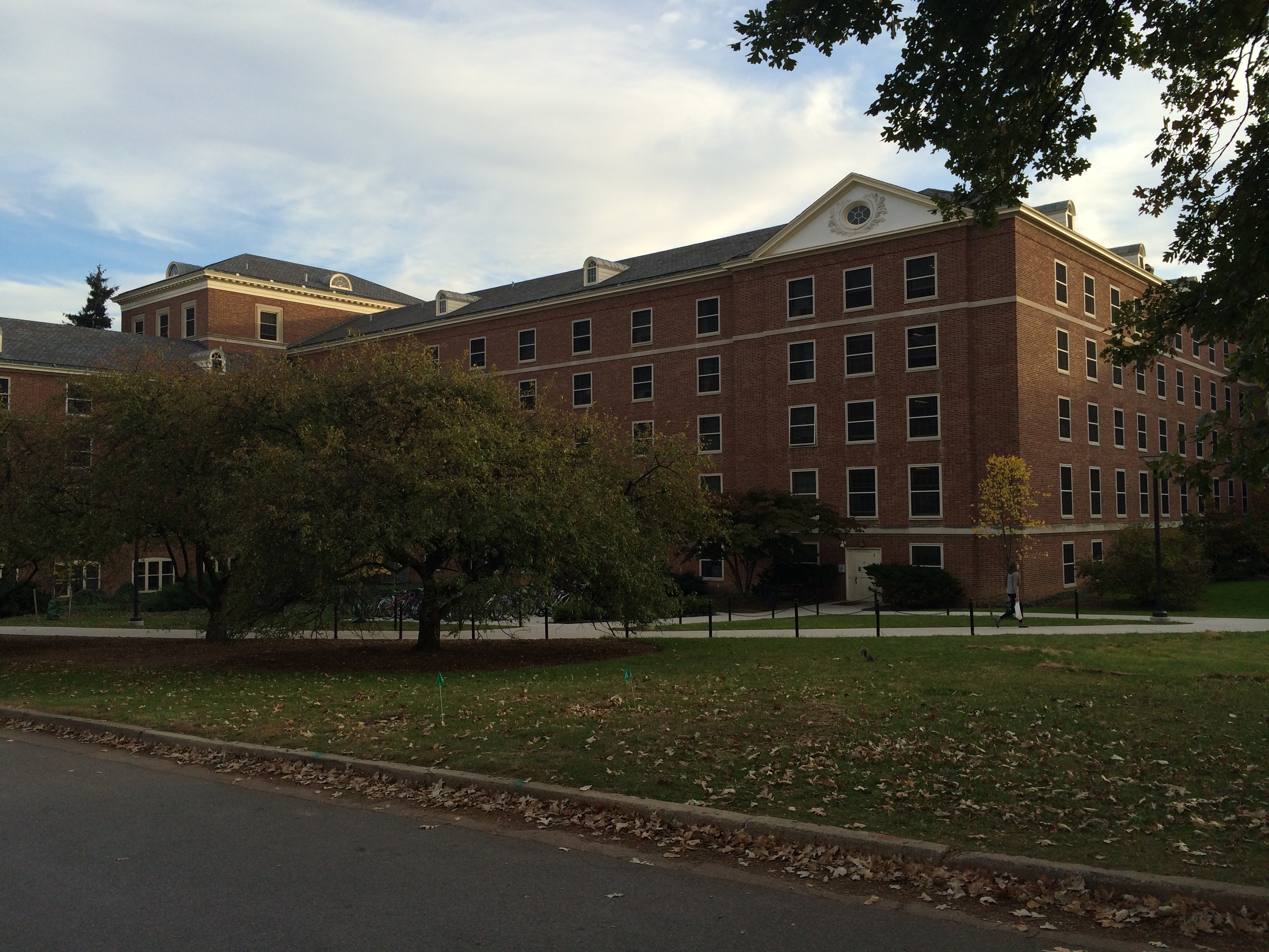 South Halls, which are currently getting a bit of a face-lift, and where I lived freshman year are pictured below. Almost all the freshman live on the other side of campus in East Halls, but I was one of the ‘lucky’ few to avoid the ghetto. I say lucky because East dorms are definitely the worst of all (no wonder–it’s where the freshman live), but it also creates a sense of community. To orient yourself a bit, South Halls (Simmons is included in that) are just off College Ave, while North and East Halls are about a 10-minute walk up campus closer to the stadium, and West Halls (nicest, by far) are near the Lion Shrine and the other end of College Ave.
