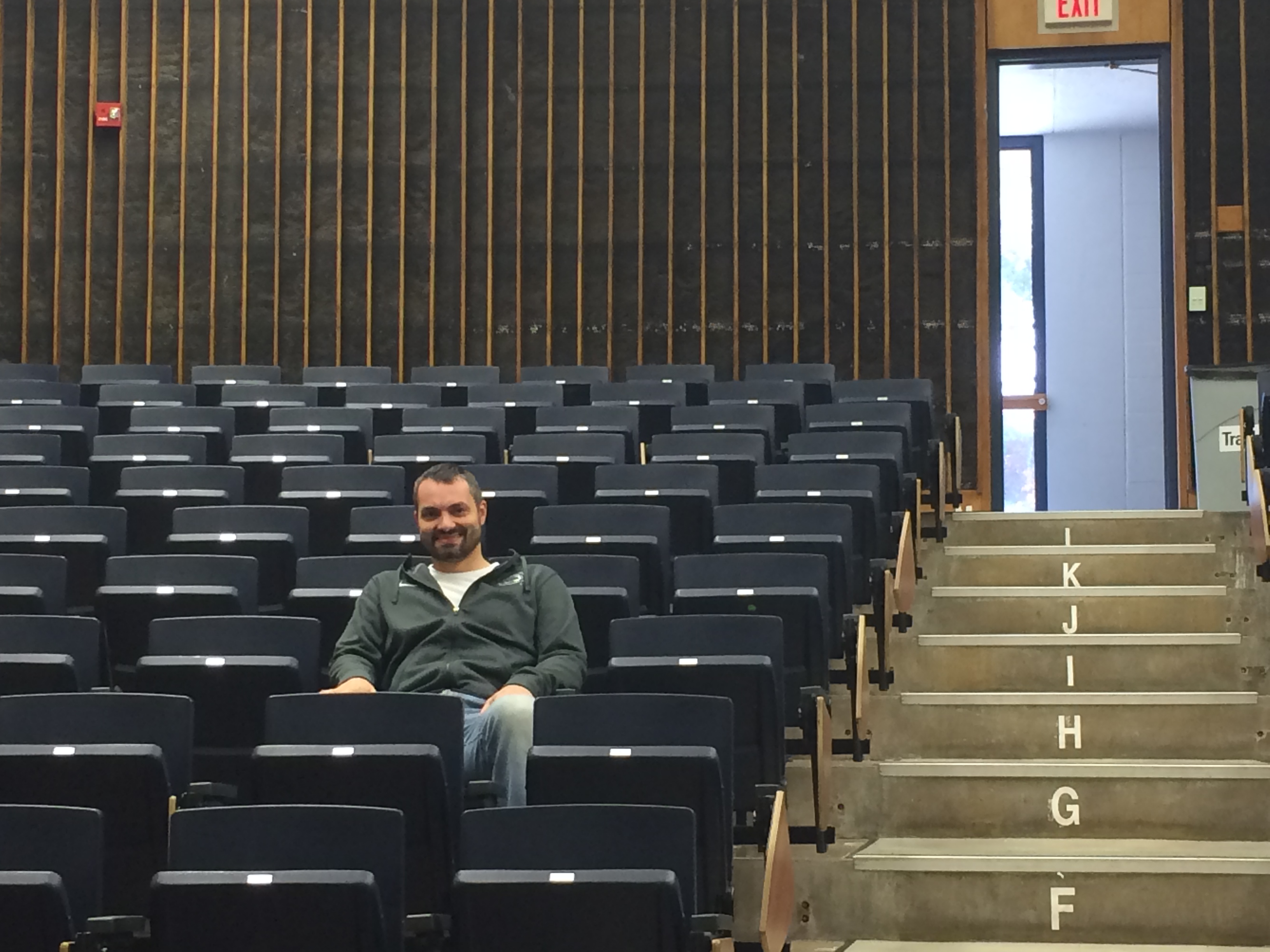Adam wanted to check out a classroom in which he’ll be teaching this spring, so we tagged along. It is in Thomas Building, which features the largest classroom on campus–seating for 726! I had a class here–History of Landscape Architecture–my first semester freshman year. Talk about overwhelmed! See the placard on the wall in the photo below, it’s not hard to find which room it is: