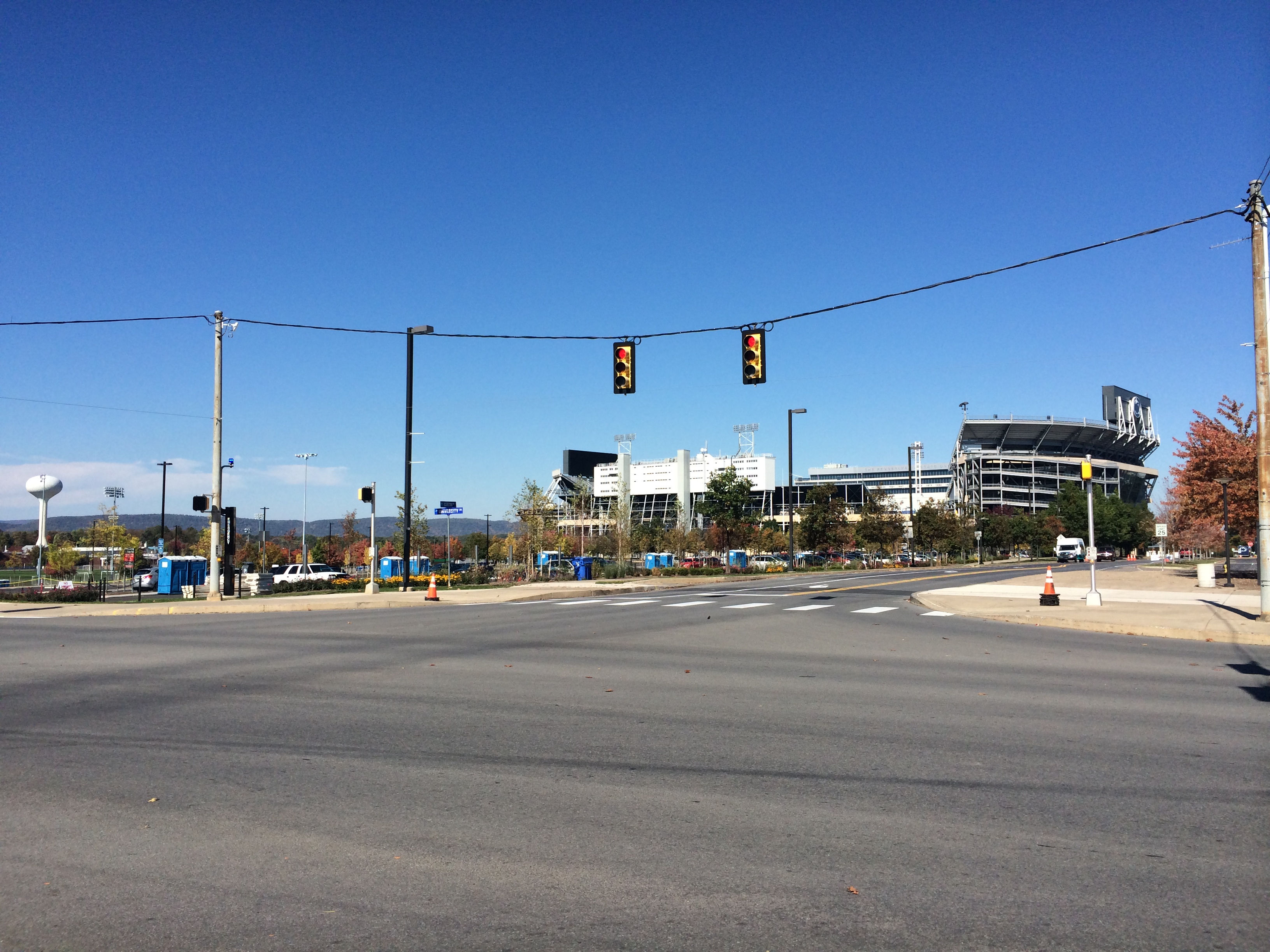 Just beyond Wagner building is the intersection that separates the campus from Beaver Stadium (capacity: 106,572) and the Bryce Jordan Center (basketball, concerts, commencement, etc…):